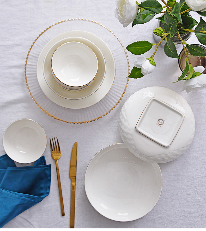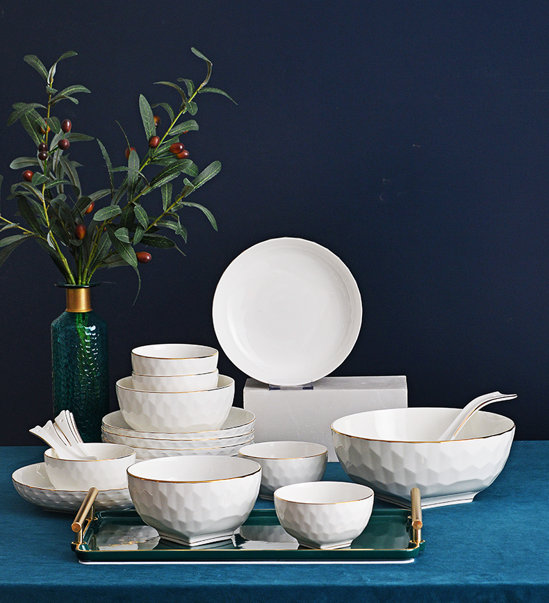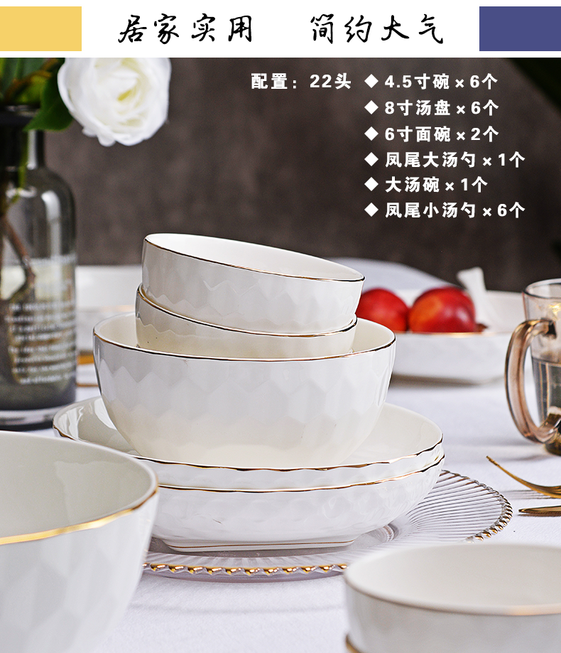 唐惠餐具整套唐山骨瓷22头碗盘餐具套装皮箱包装乔迁结婚送礼水立方 水立方22头
