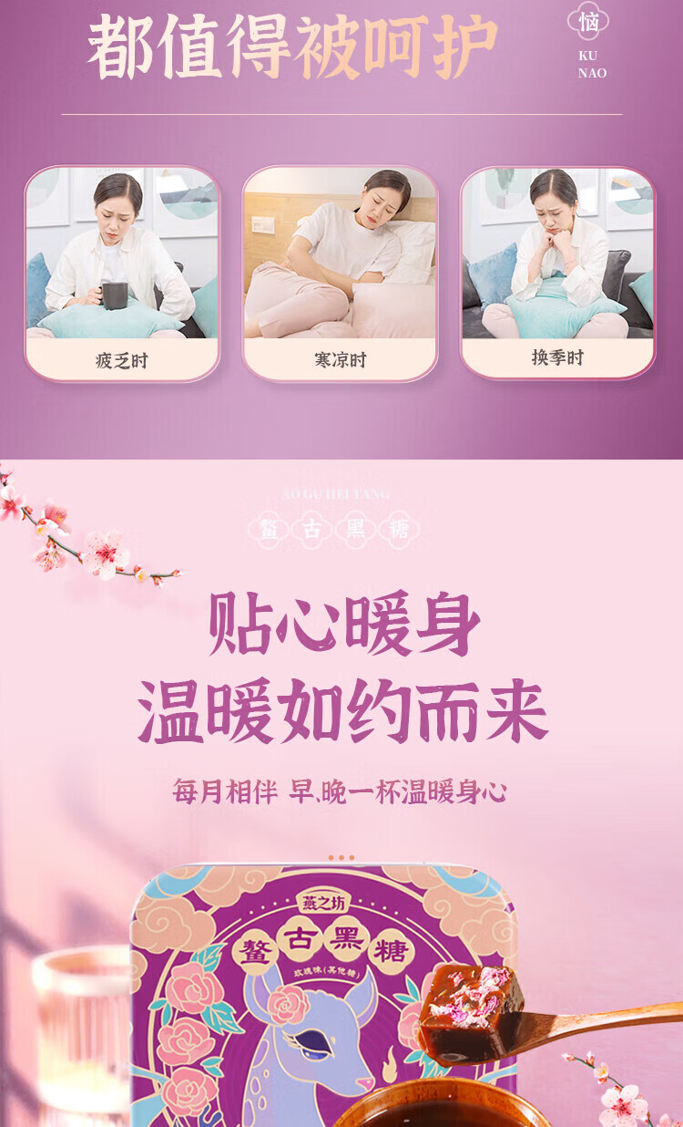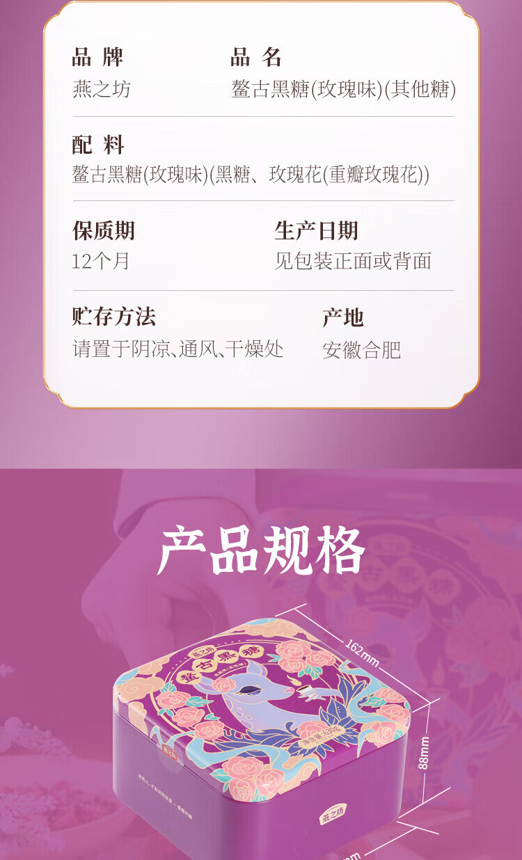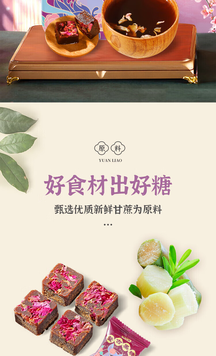 燕之坊 鳌古黑糖玫瑰味礼盒630g 手工甘蔗红糖单独包装即冲即饮