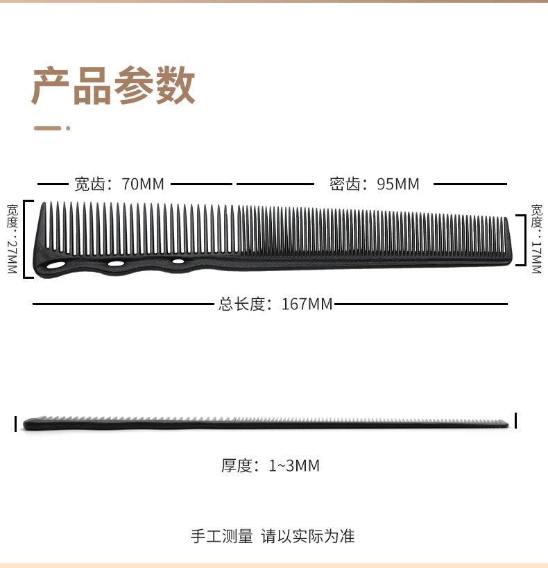 YS/PARK YS-252 黑色/红色/白色 超薄男士短发剪发梳 胡子鬓角修剪边角梳