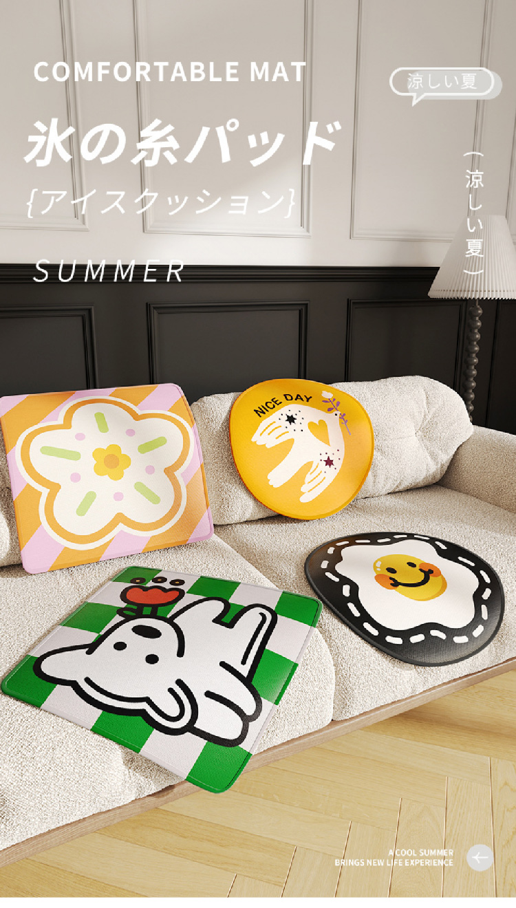 【冰丝透气凉垫】夏天卡通笑脸小狗透气凉垫 办公室椅子垫凉席夏季坐垫可水洗沙发垫