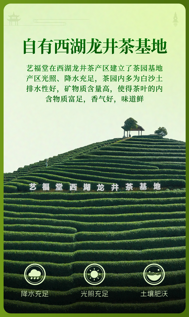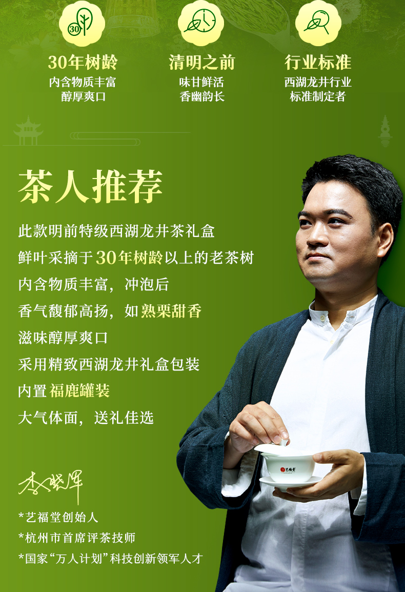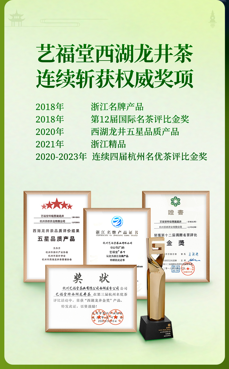 - “艺福堂茶业”创立于2008年,是一家集生产、销售、科研为一体的现代茶业企业,主打西湖龙井,兼营世界各地名优茗茶及花草茶,是中国茶行业为数不多的年销售额过5亿的品牌之一,是杭州亚运会官方指定用茶!