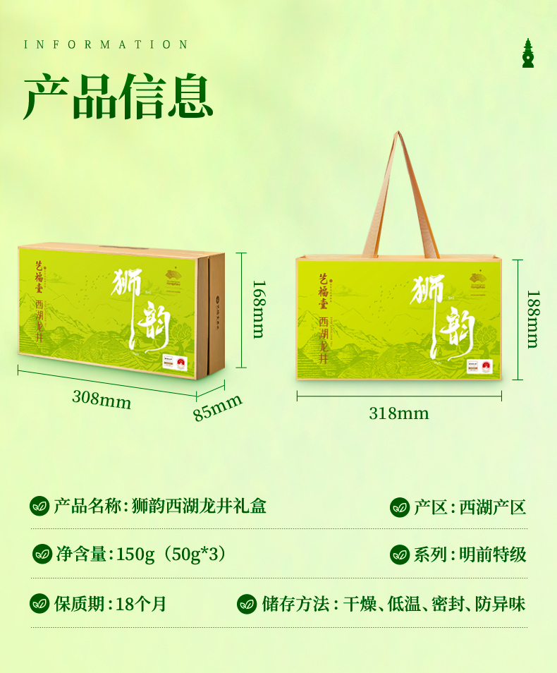 【新茶预售】艺福堂2026新茶狮韵西湖龙井礼盒150g(50g*3)/盒