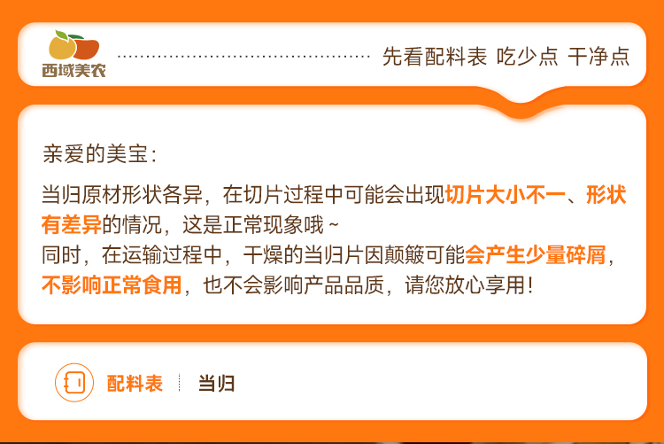【顺丰!!!】西域美农 当归头片甘肃岷县岷归大片正品当归中药材组合党参黄芪