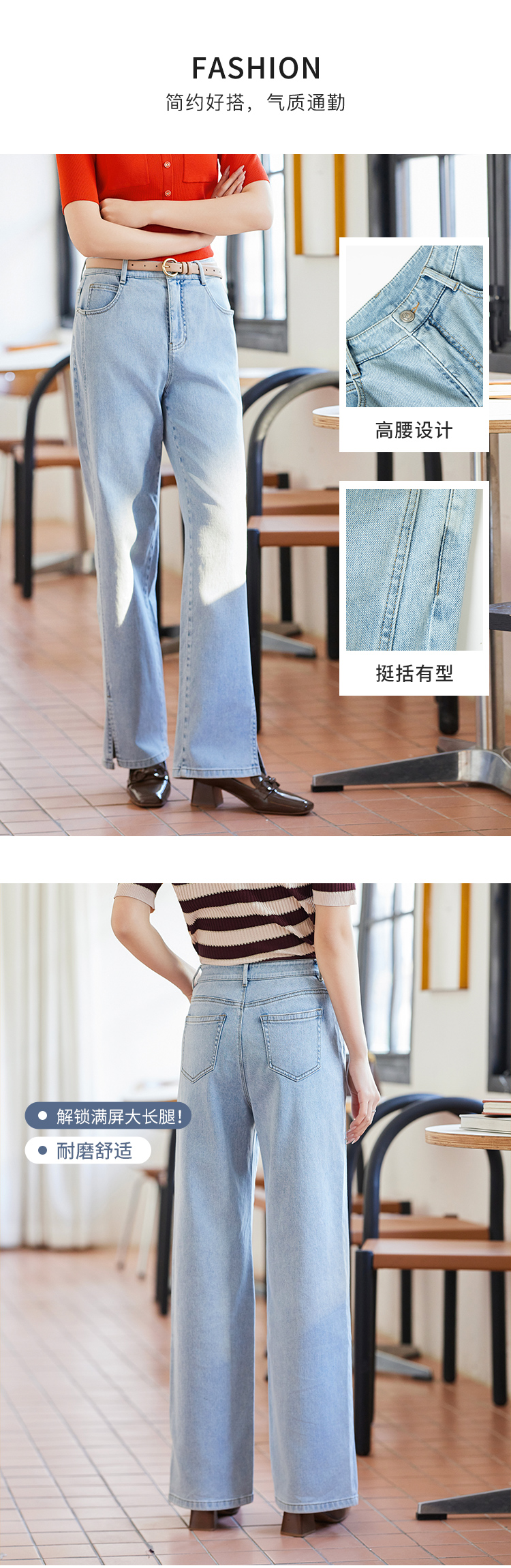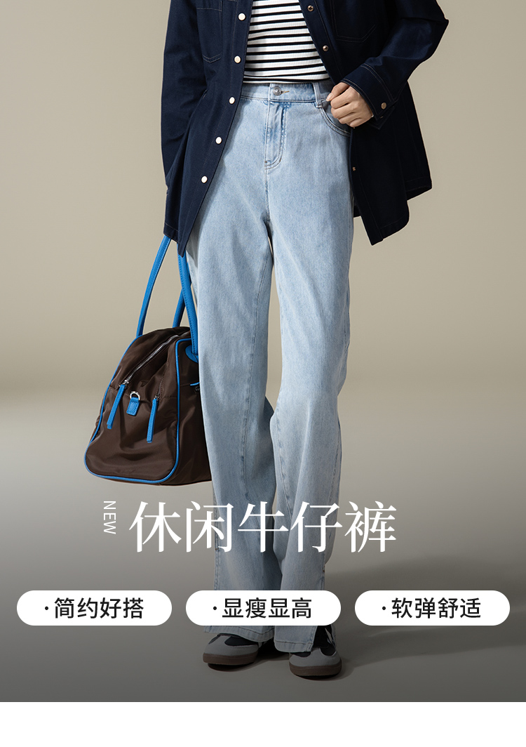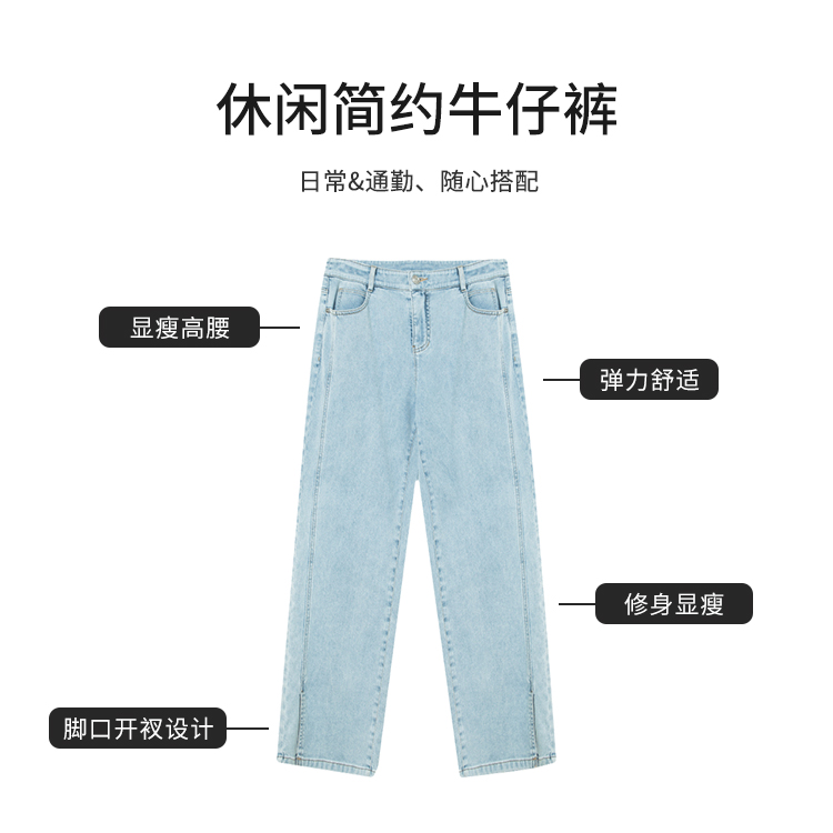 【商场同款】CJTJ304 “时髦长款开叉裤” 好穿显瘦的蓝色牛仔裤 裤口开叉 行走灵动自然 柔软弹性 坐立舒适不拘束