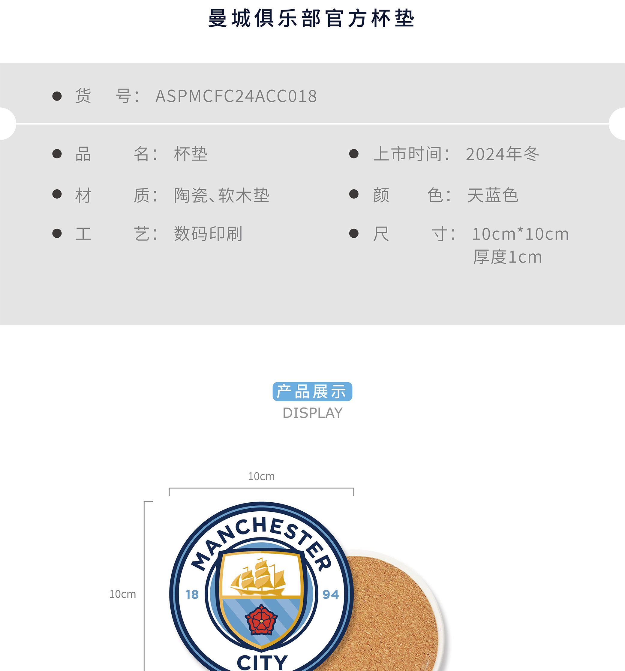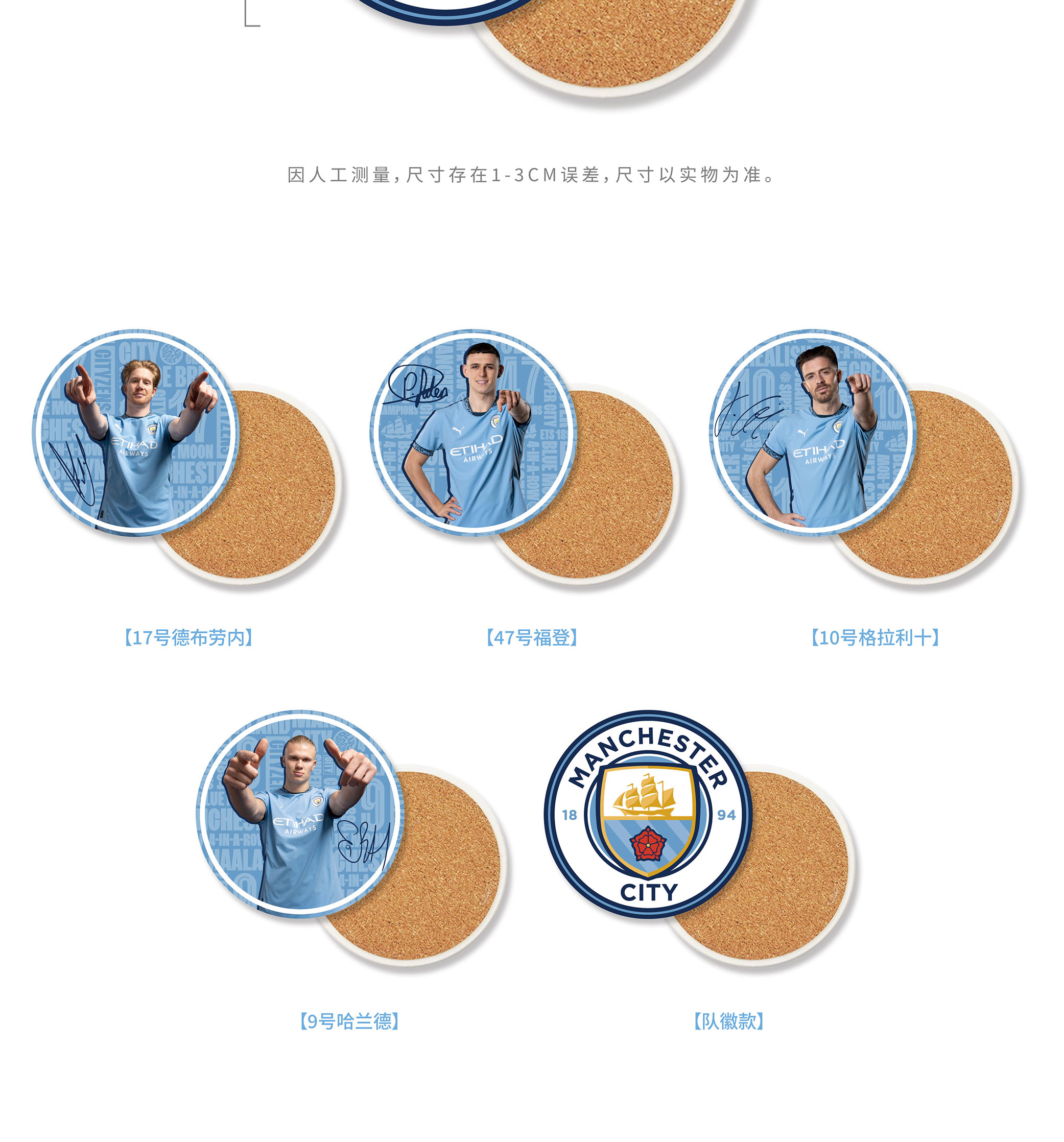 【官方正版】曼城俱乐部 | 球员杯垫家居办公隔热垫足球迷礼物