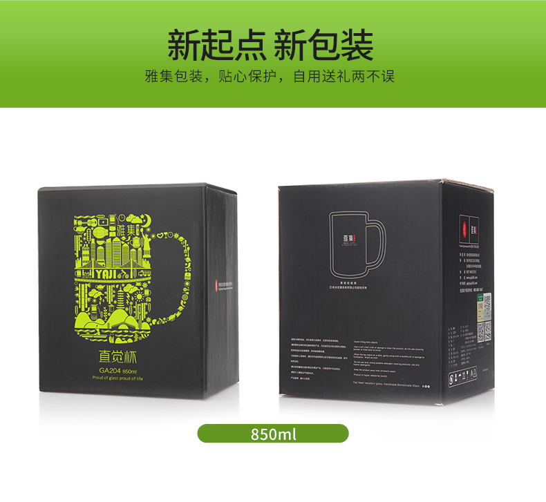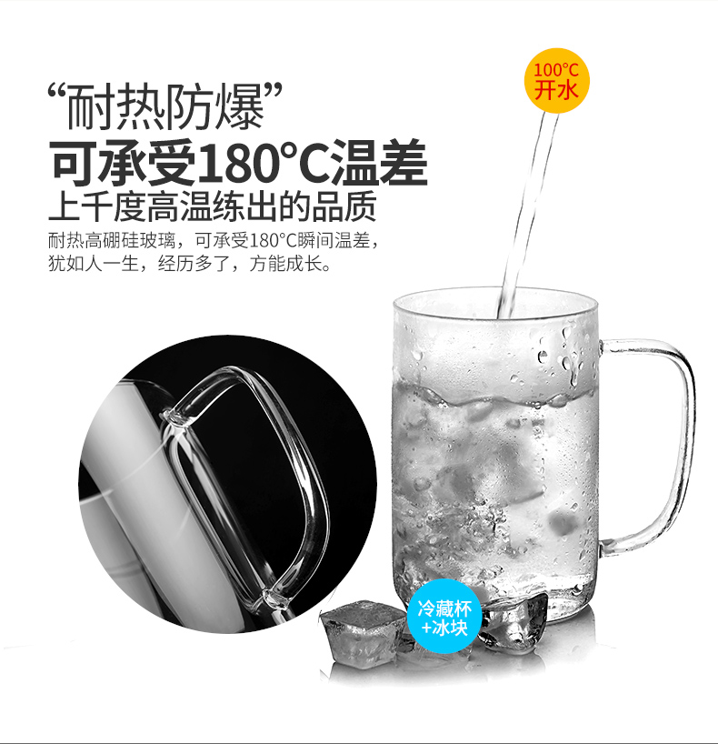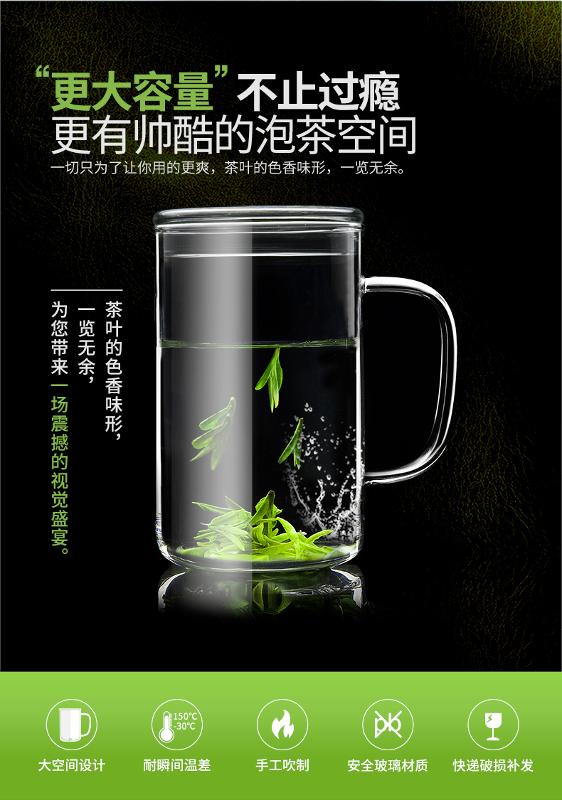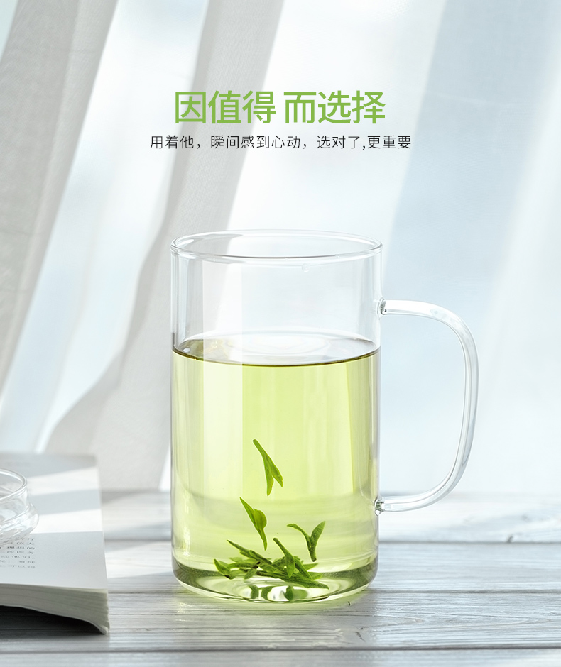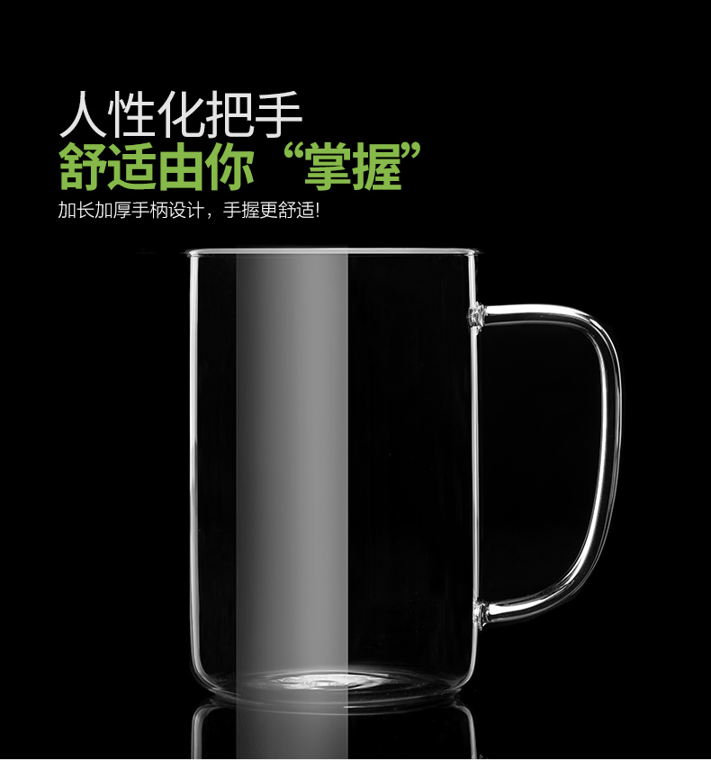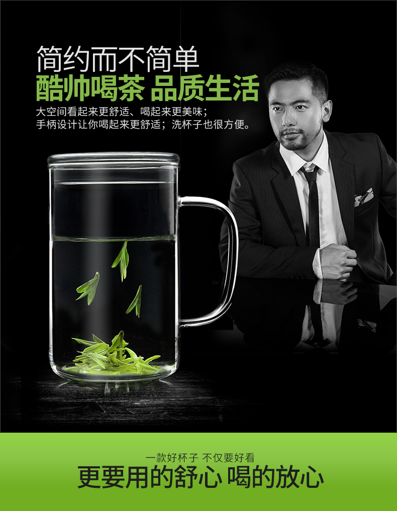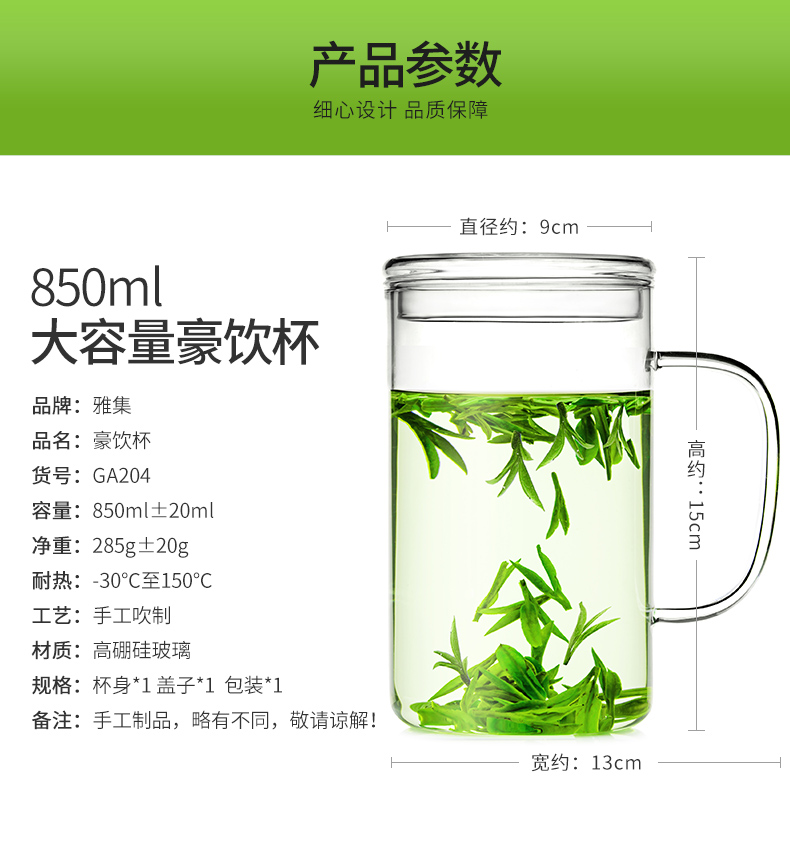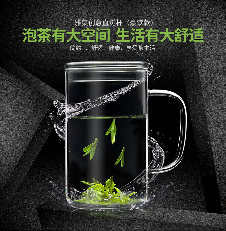 雅集玻璃杯男士大容量直觉杯办公室耐热透明泡茶杯家用绿茶杯带盖 豪饮杯