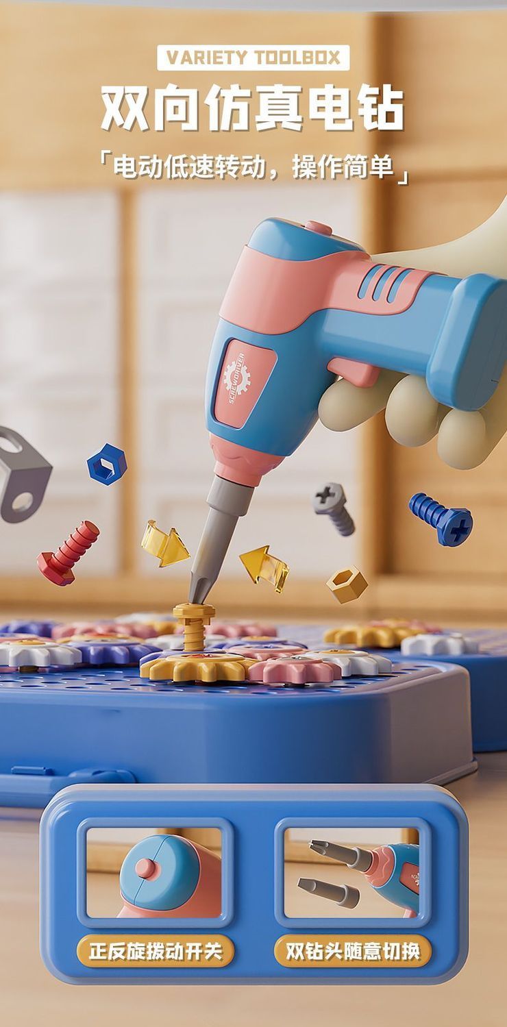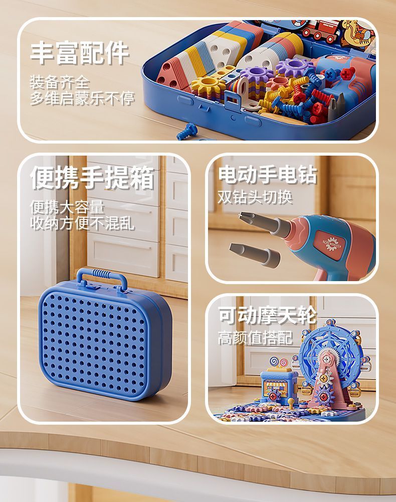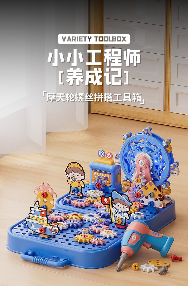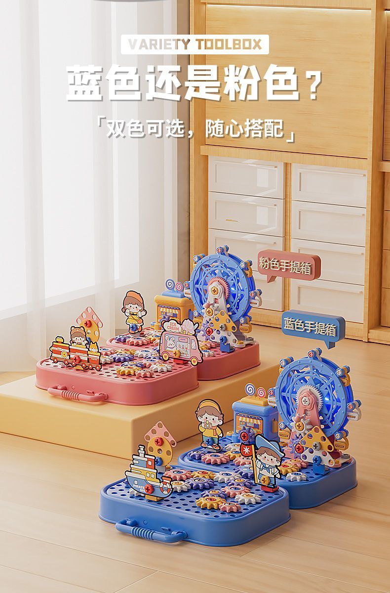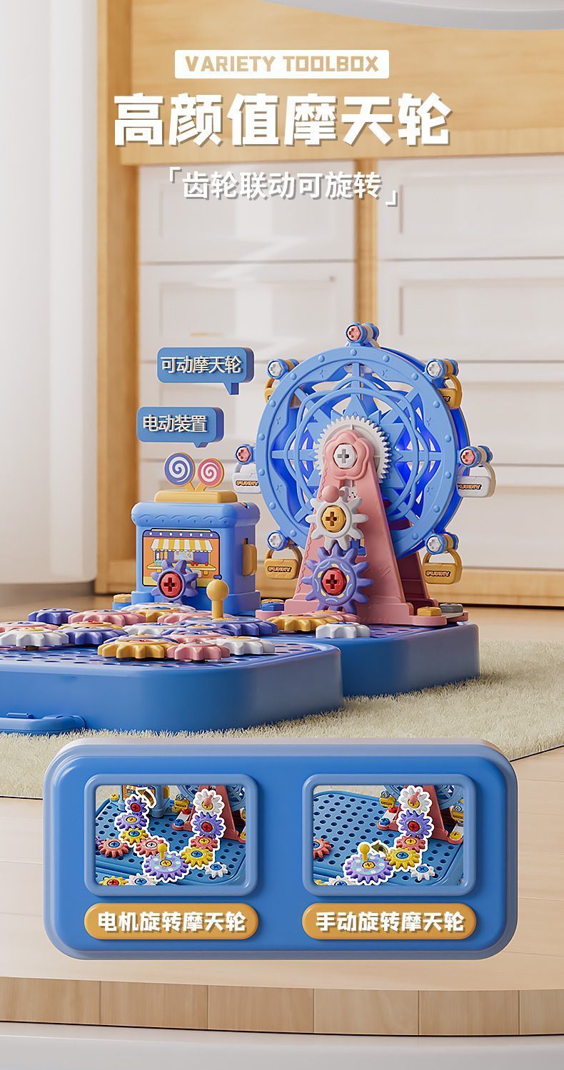 儿童全套diy摩天轮拼装拧螺丝钉玩具电钻组装玩具拆卸