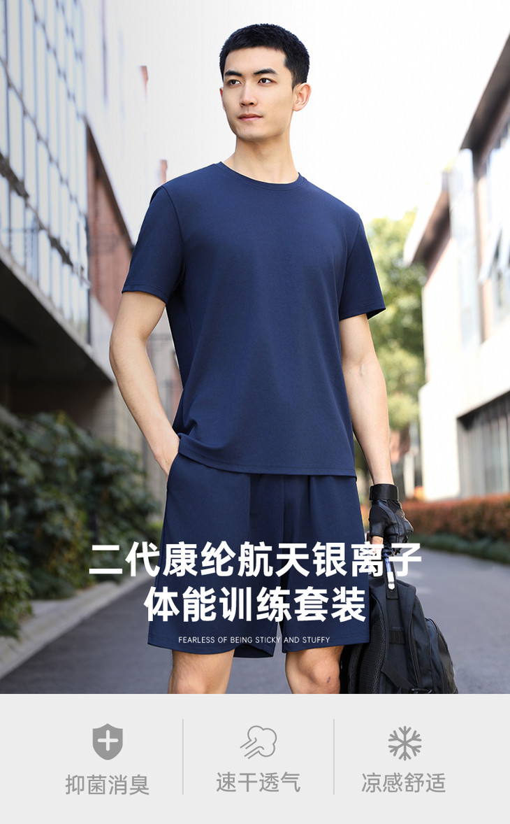 【实付满399送保温杯】【二代康纶航天银离子体能训练套装】圆领弹力运动衣服 透气吸湿排汗短裤短袖套装X001