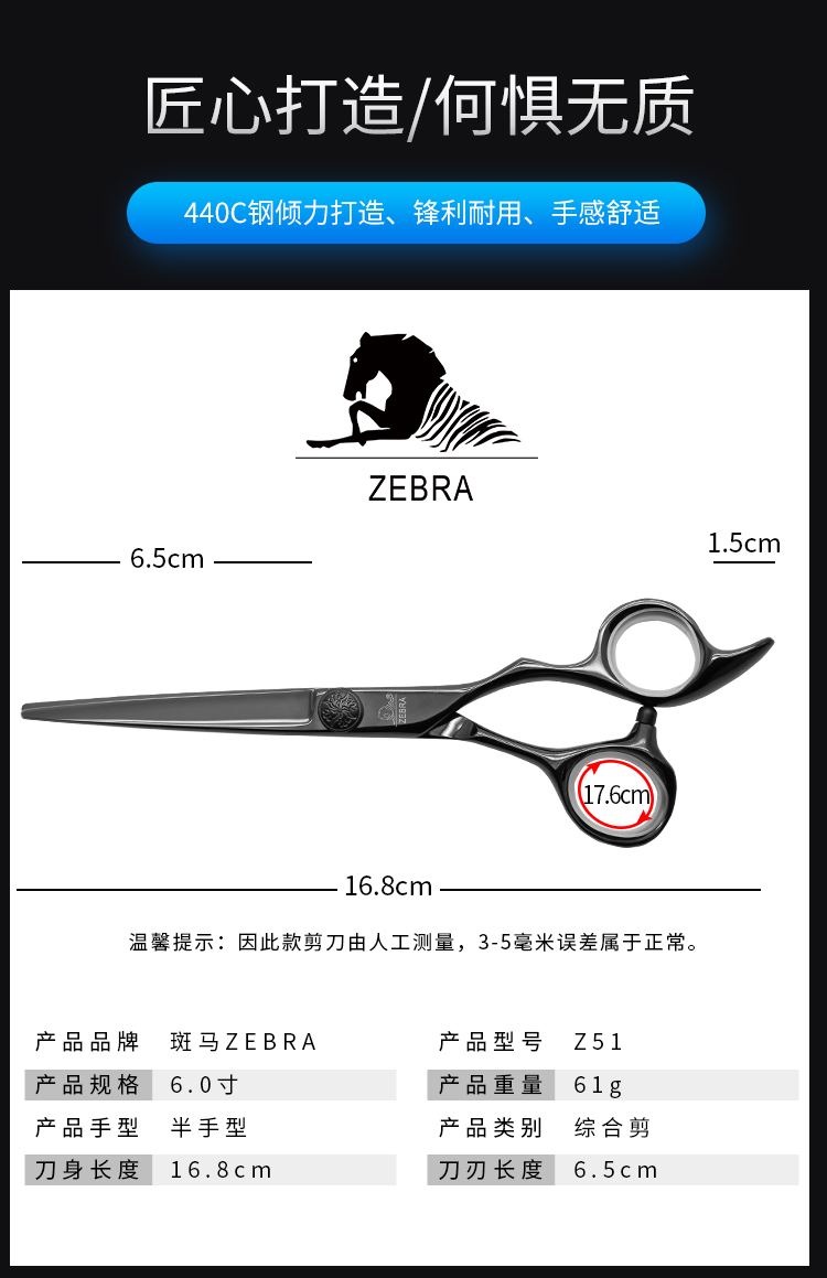 ZEBRA斑马 剪刀 Z51 锋利/直发/刘海/结构剪/线条剪/半手型/平剪/6.0寸