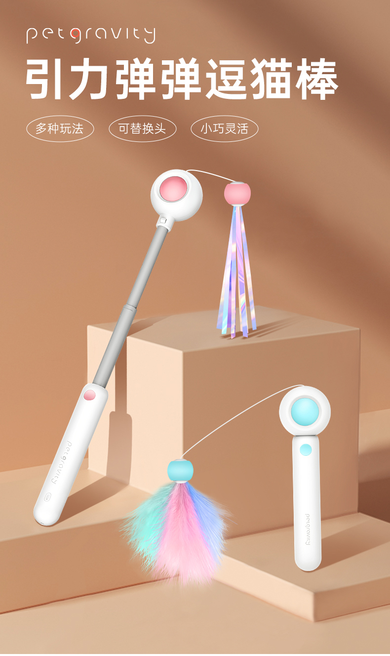 引力逗猫棒仙女羽毛铃铛自嗨逗猫棒可替换头自动伸缩