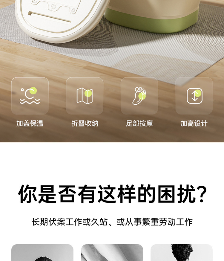 【可折叠便携设计、足底按摩功能】可折叠泡脚桶家用便携加厚足浴盆过小腿保温洗脚盆洗脚桶.TA