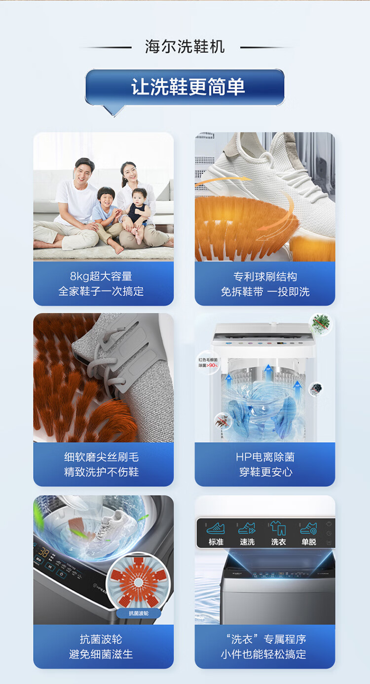 海尔(Haier)洗衣洗鞋机全自动洗脱一体机家用大容量刷鞋机懒人神器一级能效洗袜子地垫 一投即洗免拆鞋带 8kg大容量丨16分钟速洗丨可洗2-6双 T565