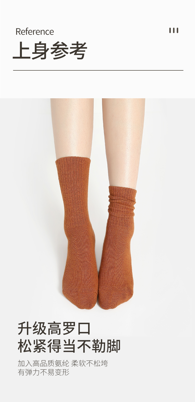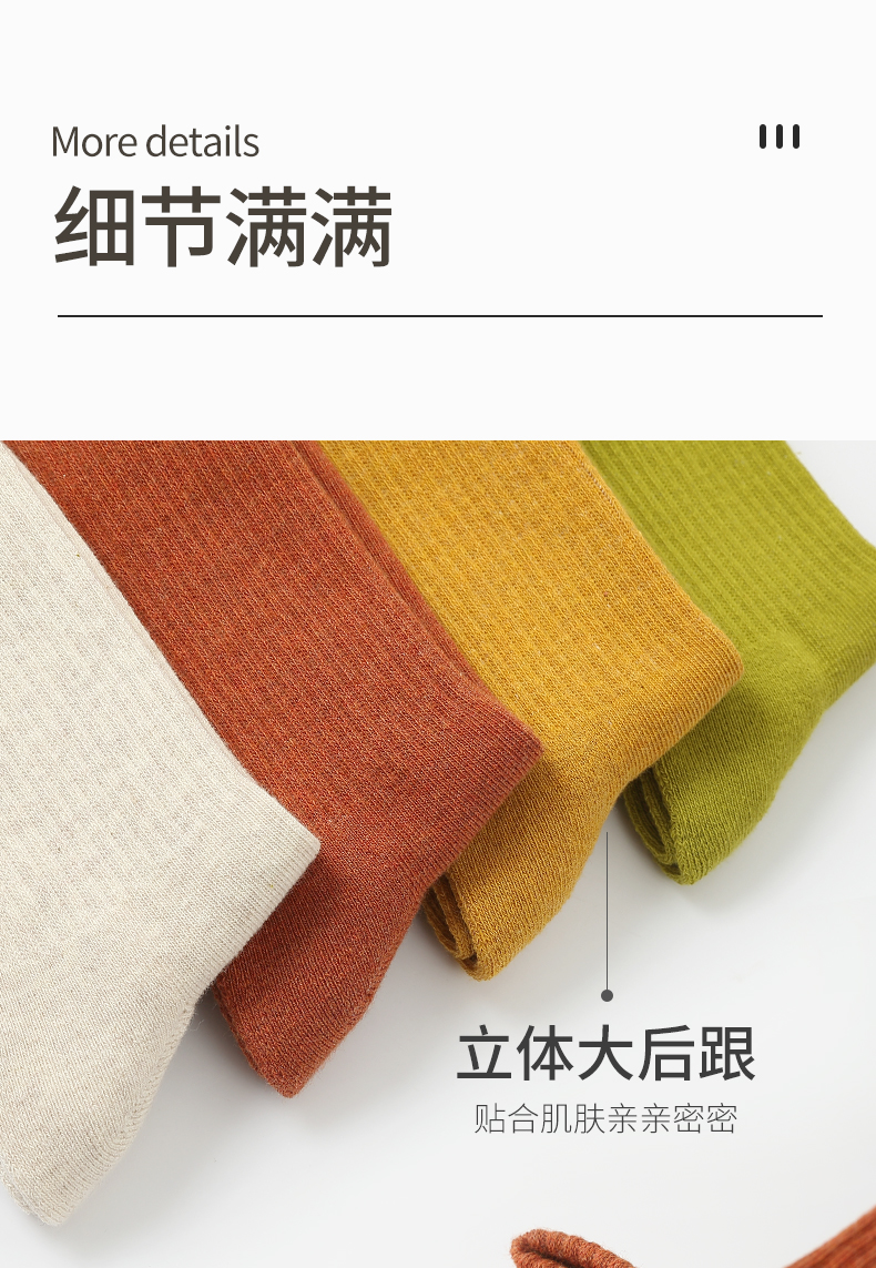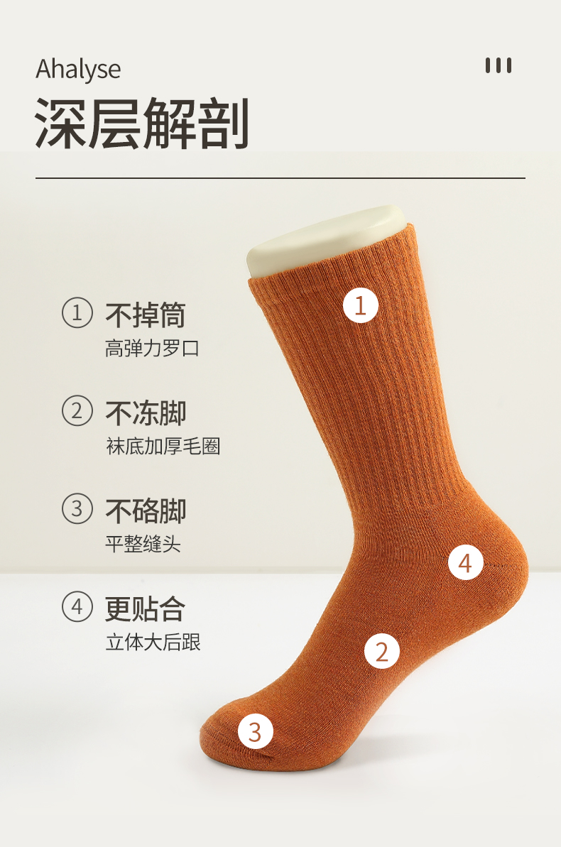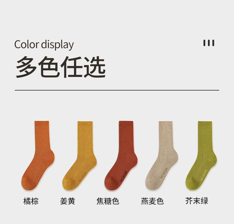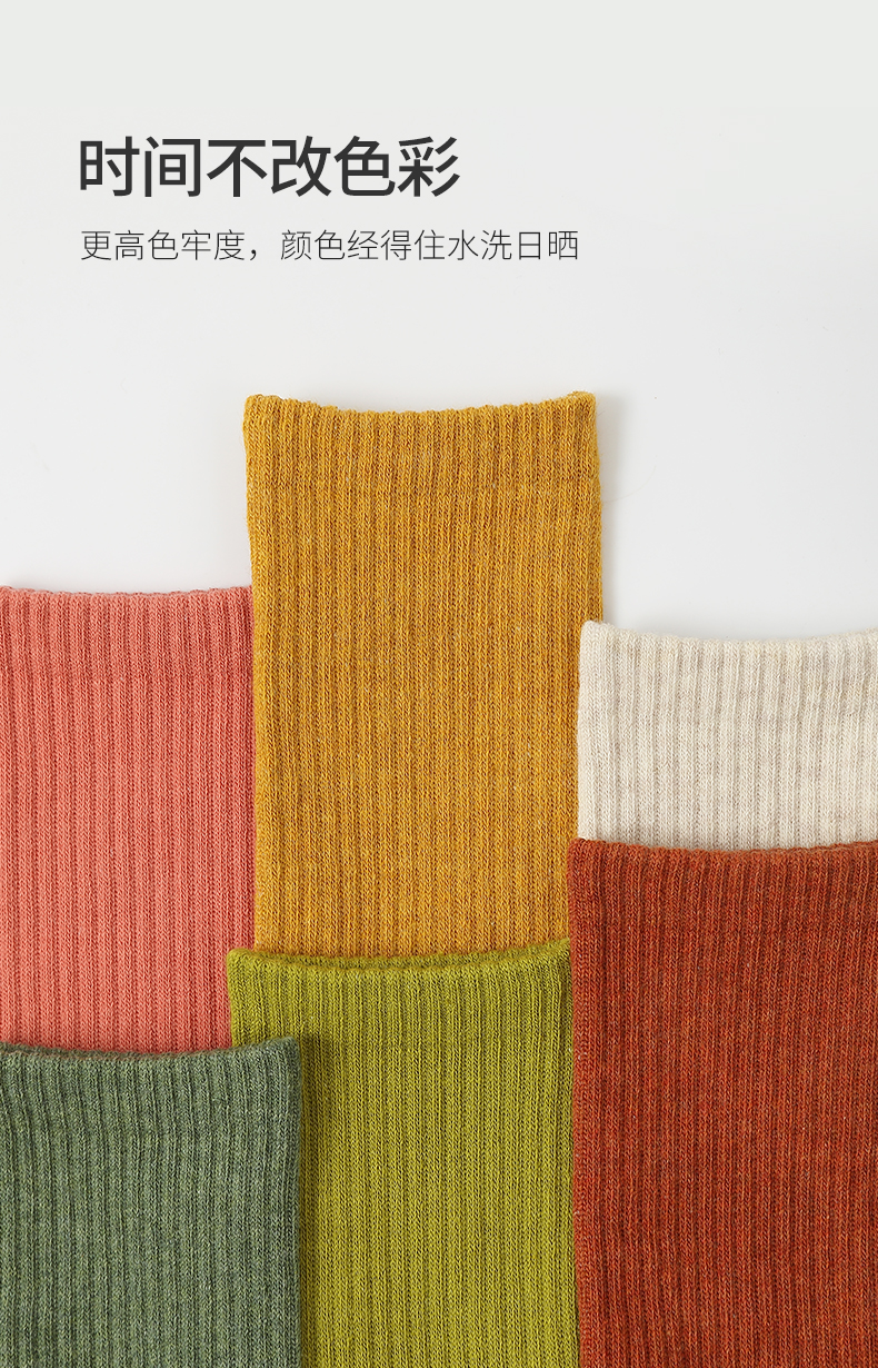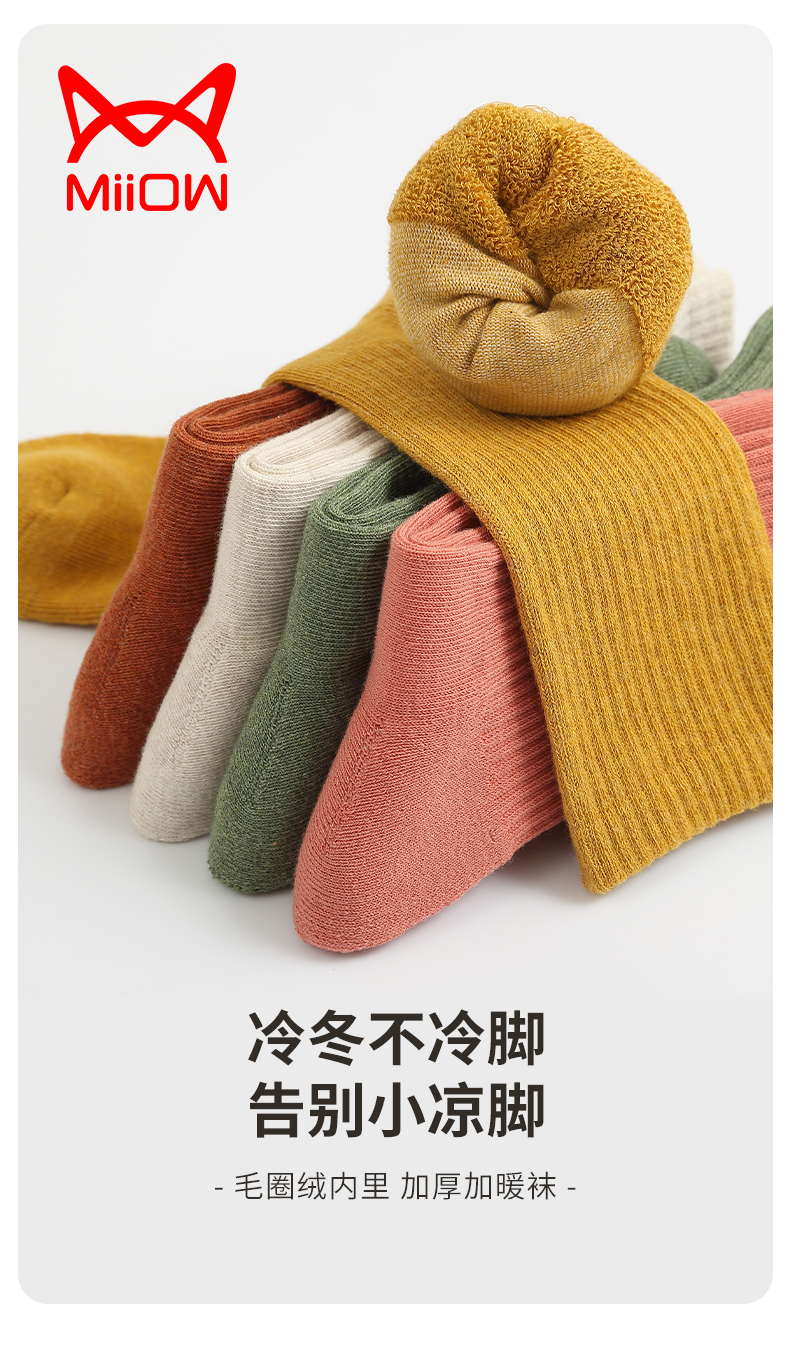 时尚潮流毛圈女袜(五双装):黑色、白色、燕麦色、橘棕、姜黄、