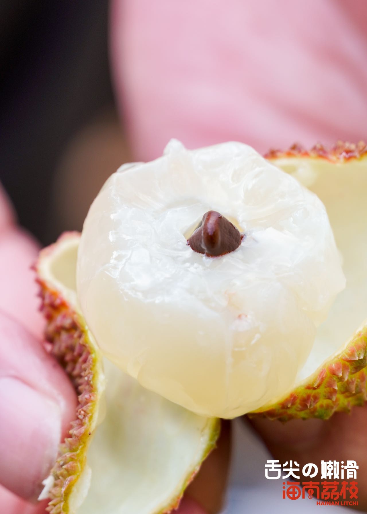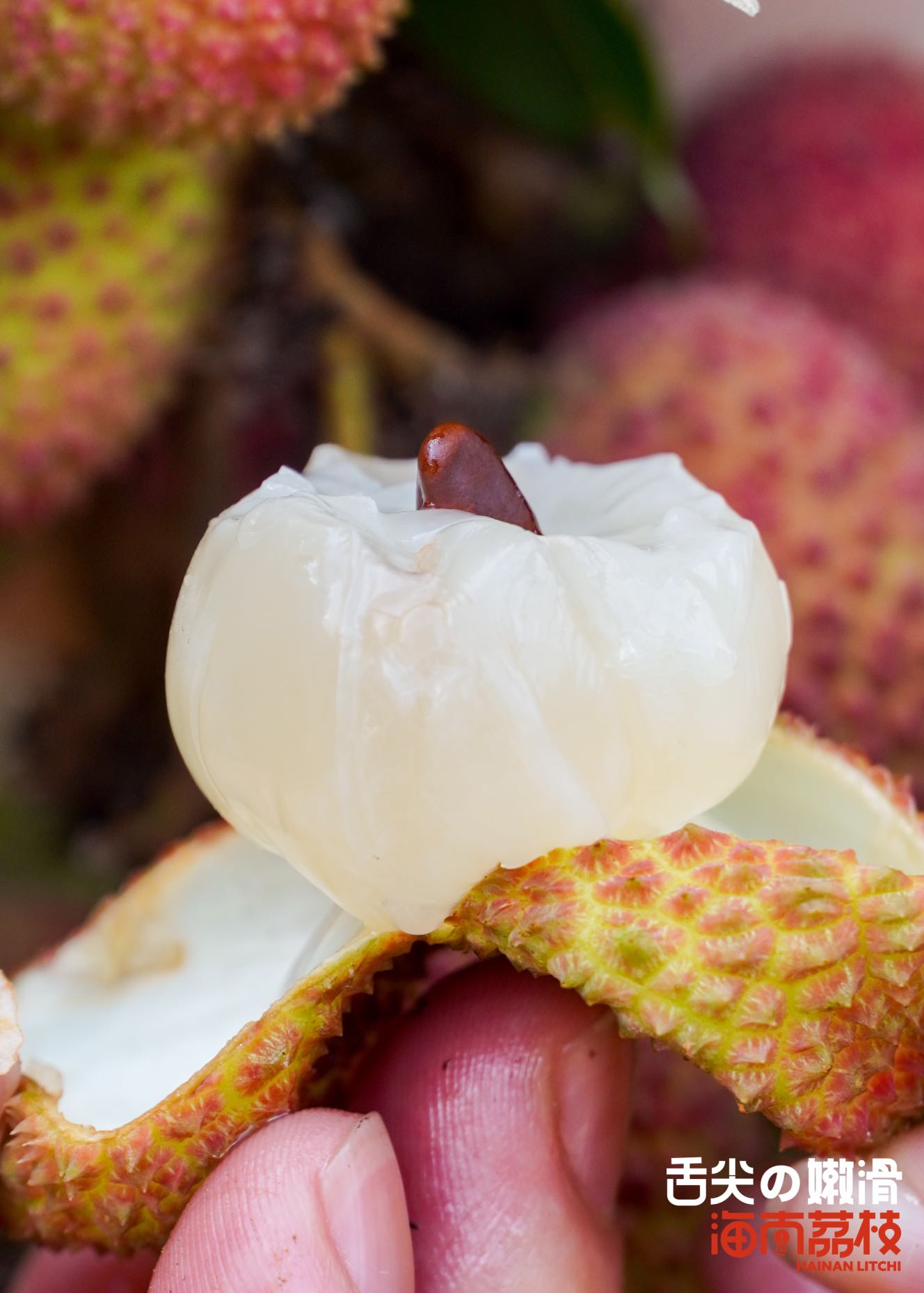 特点是皮薄肉厚、果核小、表皮颜色红绿相间(并不是越红的越好吃)、甜度高20-24度左右(靠近果核的地方会有点涩是妃子笑的特点)、甜而不腻、可食率达82.5%。