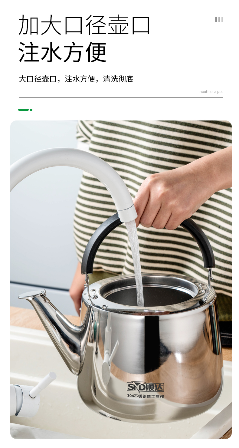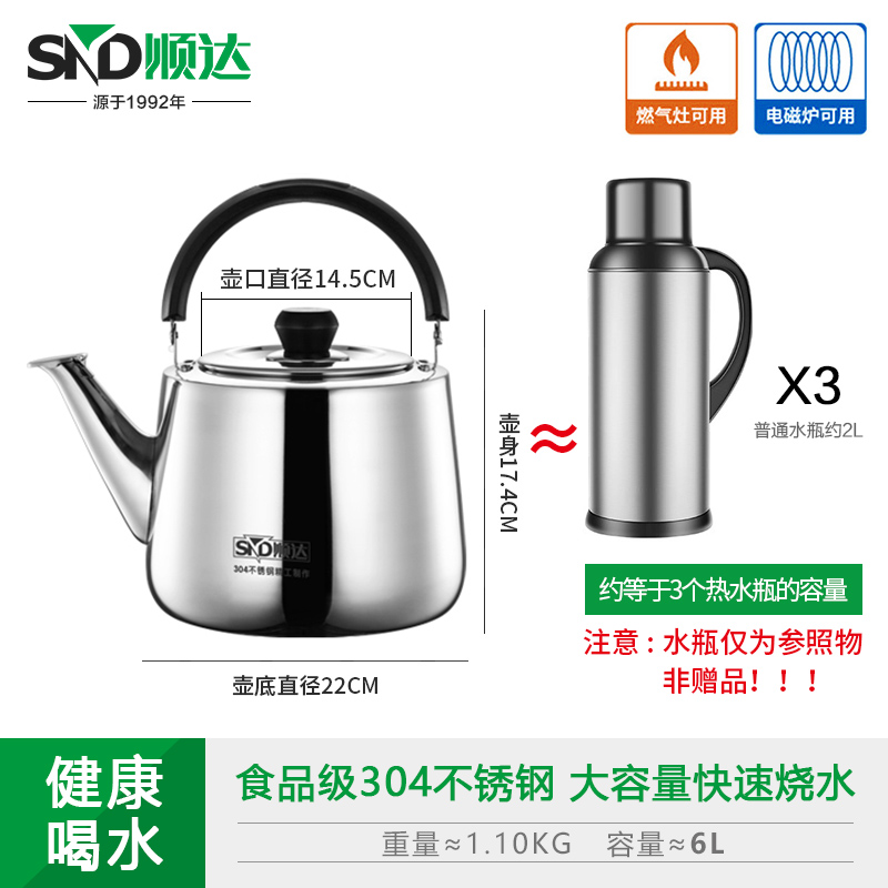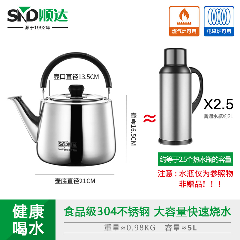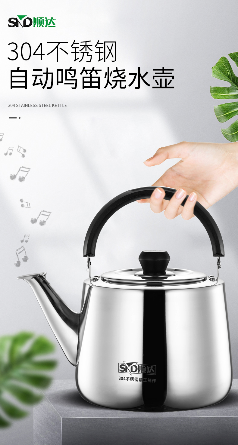 顺达(SND) 304不锈钢水壶烧水壶加厚直身琴音水壶 燃气电磁炉通用