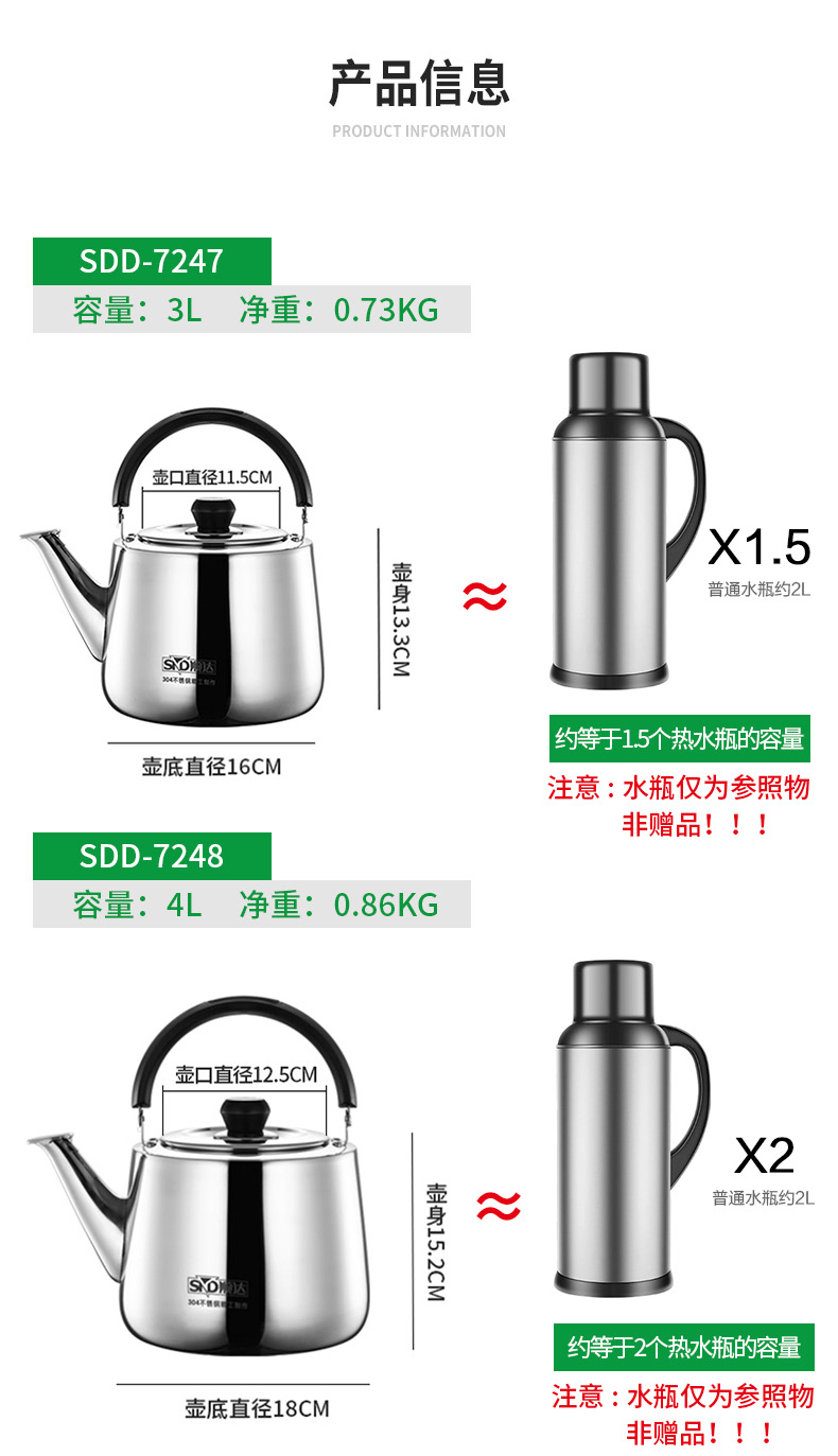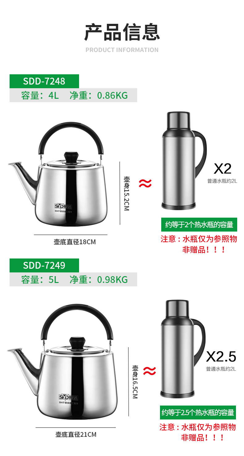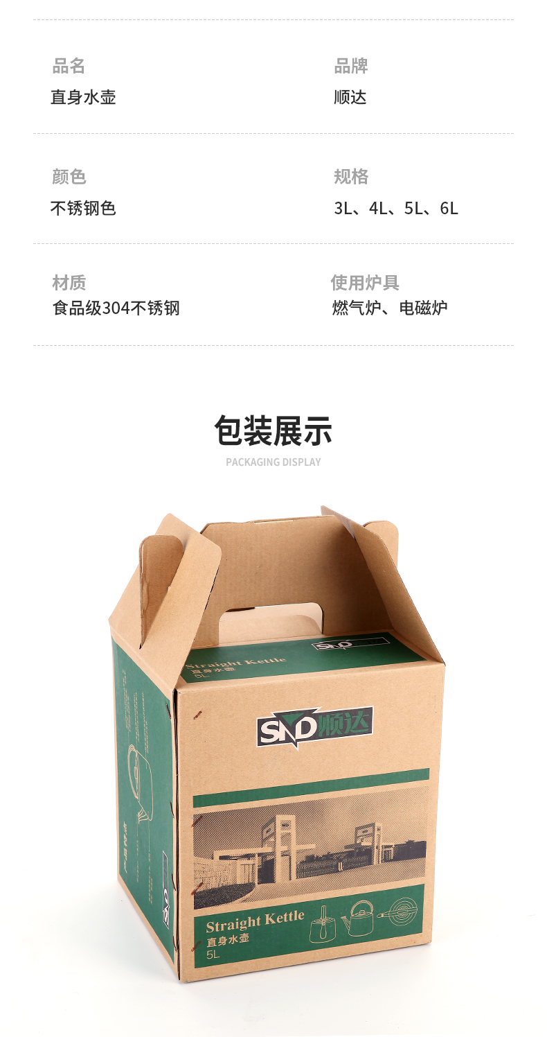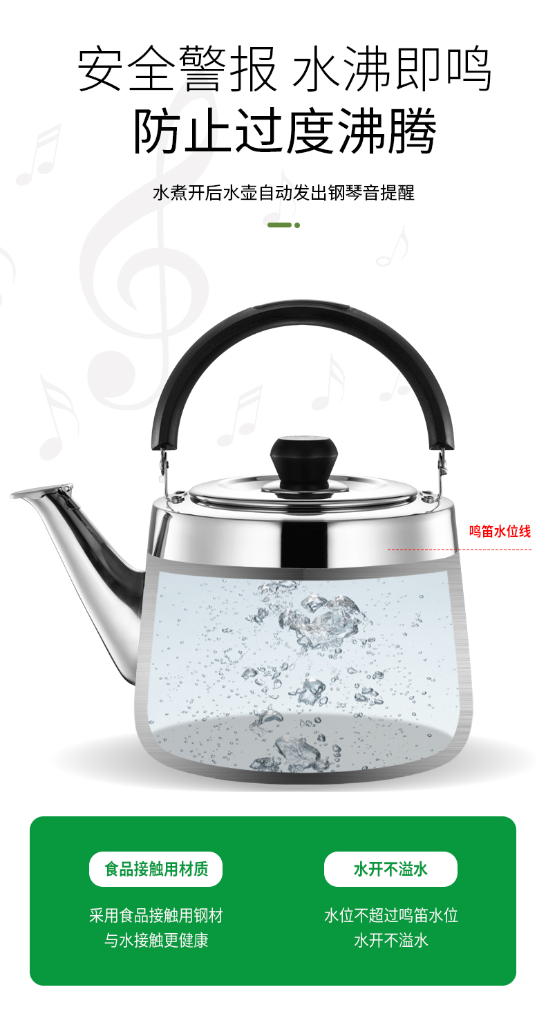顺达(SND) 304不锈钢水壶烧水壶加厚直身琴音水壶 燃气电磁炉通用
