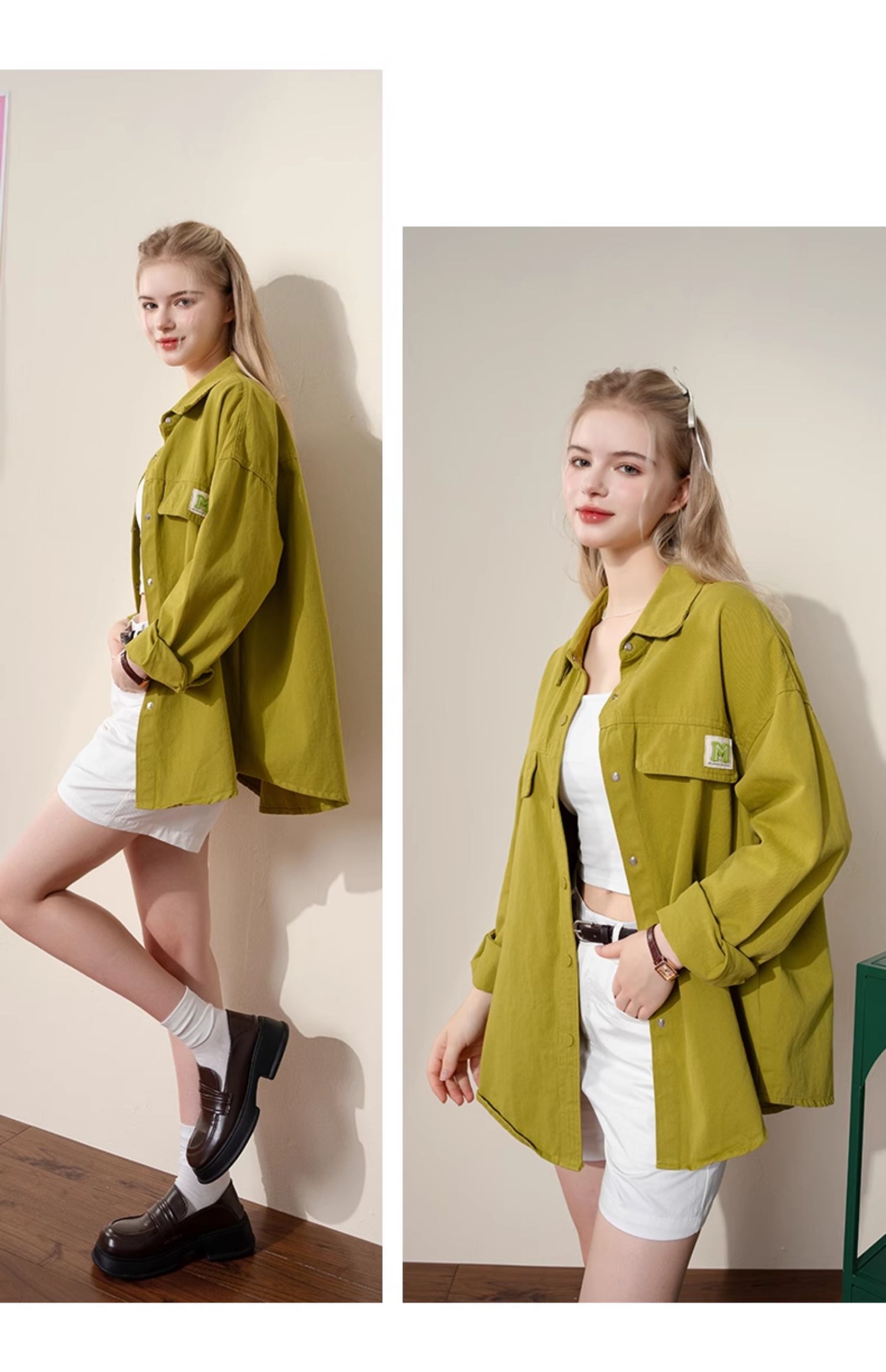mc2连帽开v假两件收腰款T恤女装春秋季新款