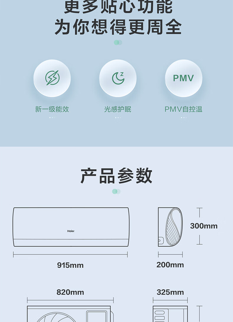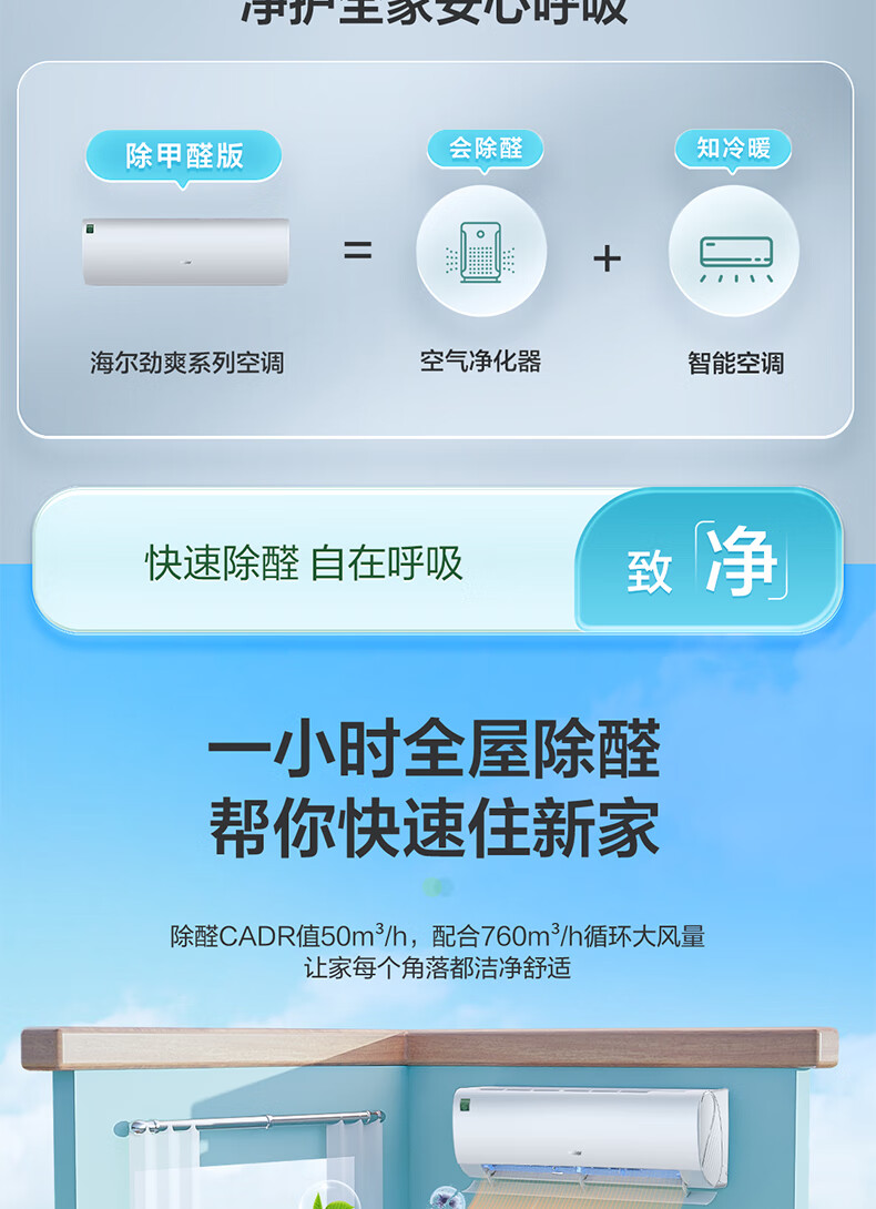 海尔(Haier)净省电除甲醛白1.5匹省电节能 健康风空调挂机 KFR-35GW/C3LGA81U1(白) 家电国家补贴20%以旧换新