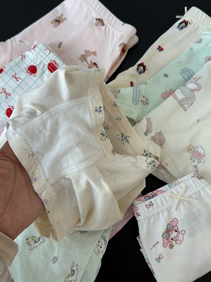 👧🏻女童部分花色 作为闭眼入的内裤推荐,它的实力真的藏不住~ 面料自带养肤 buff,吸湿透气力拉满 —— 小朋友跑跳打滚一身汗,这款贴身衣物也能快速排湿, 完全不粘腻闷汗,告别黏糊糊的不适感