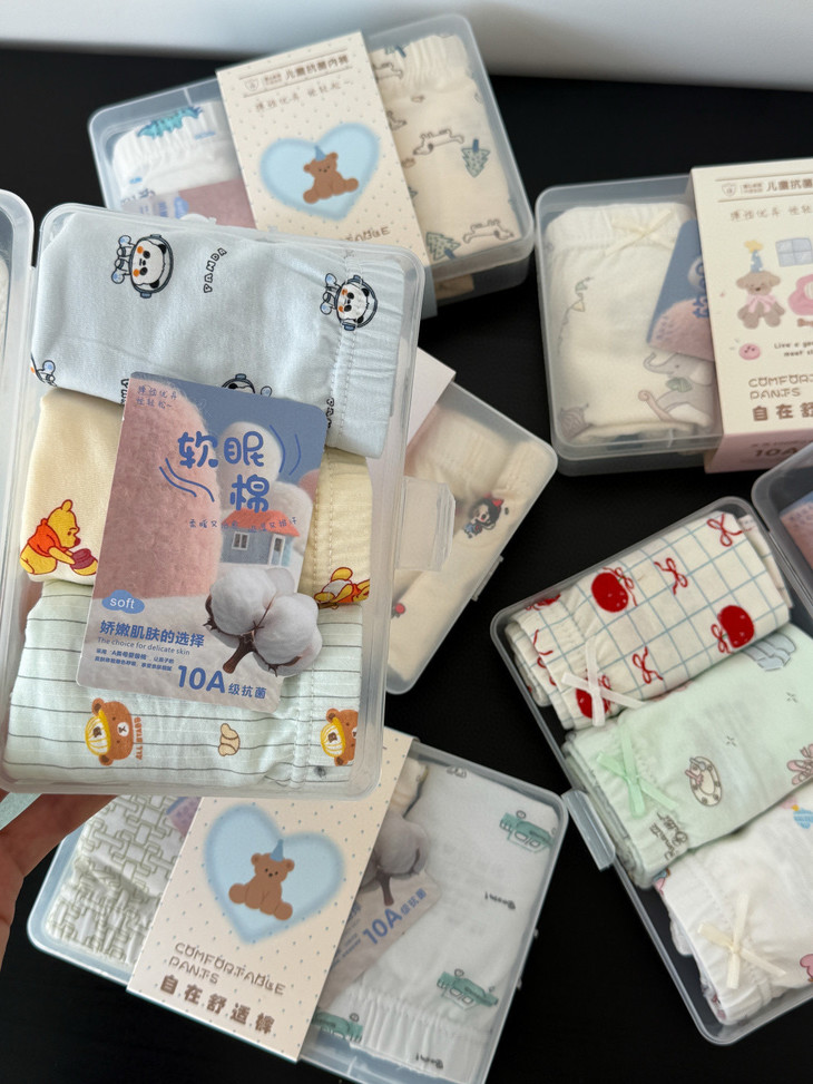 💰原价59.9/盒,现开团49.9/2盒❗🐮线下品牌货!【M260156线下品牌货10A莱卡抑菌软眠棉内裤】‼️✔️给娃选内裤千万不能将就!一盒三条装!花色随机发🉑选男女生!