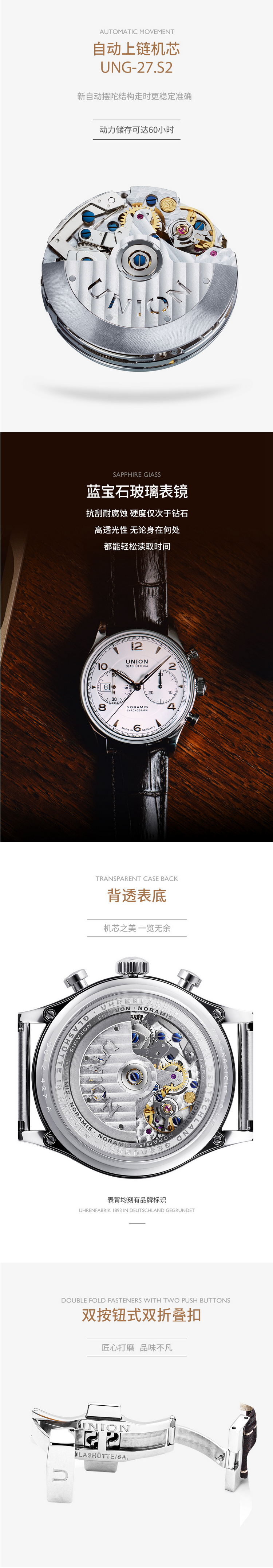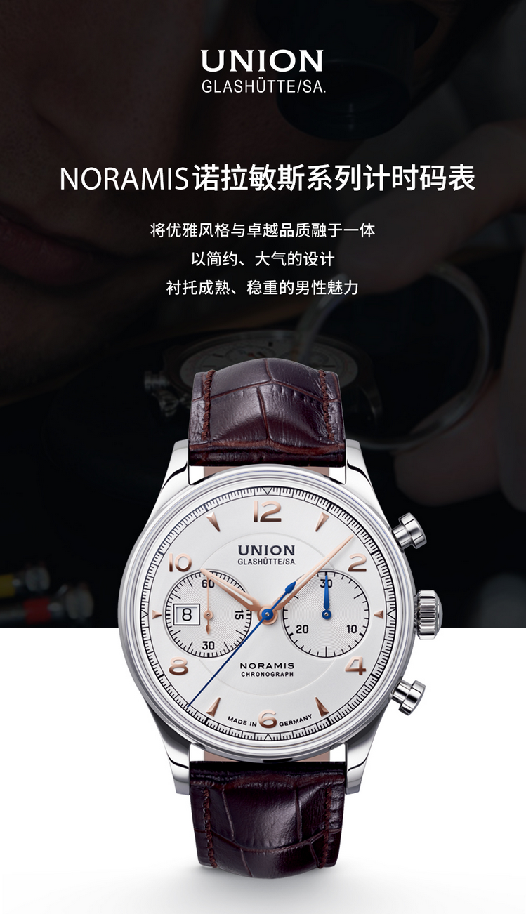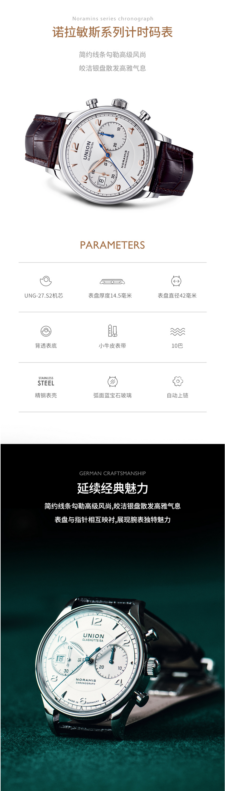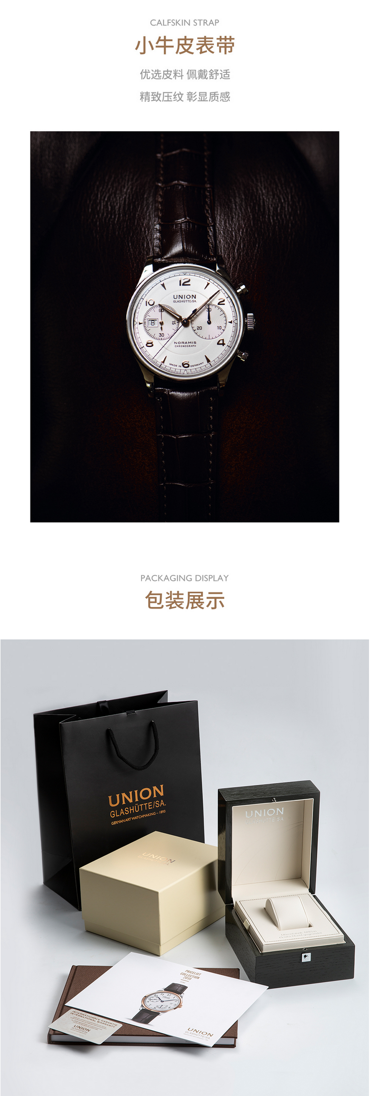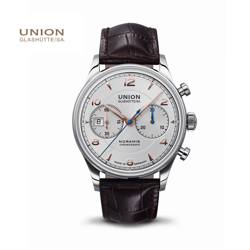 宇联(UNION GLASHÜTTE)德国手表 男士腕表 诺拉敏斯系列机械皮带计时码表 D012.427.16.037.01