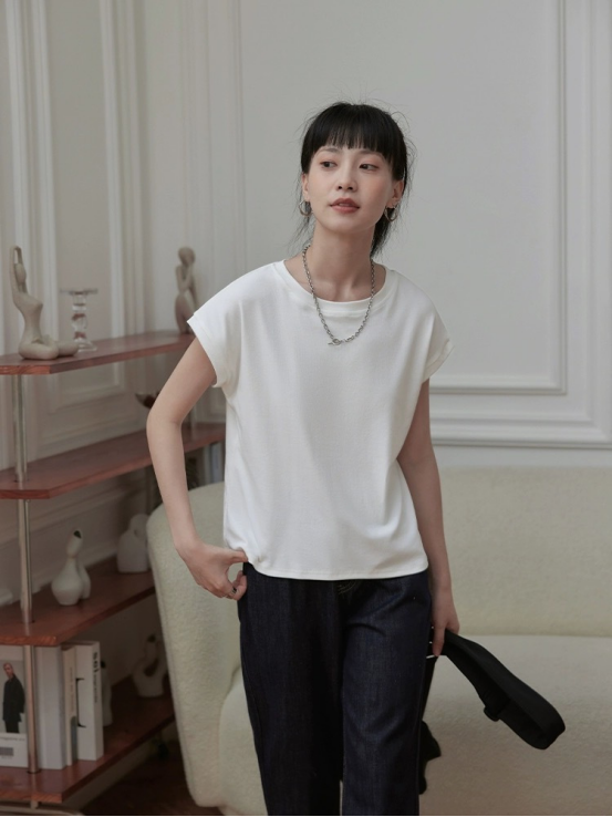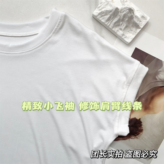 对不经意的慵懒zui心动了 质量贼厚实!版型很赞! 正肩➕小飞袖的设计真的太显瘦了! 喜欢的小飞袖T,简简单单叠穿也太好出🚪 八分慵懒 两分纯欲🥰