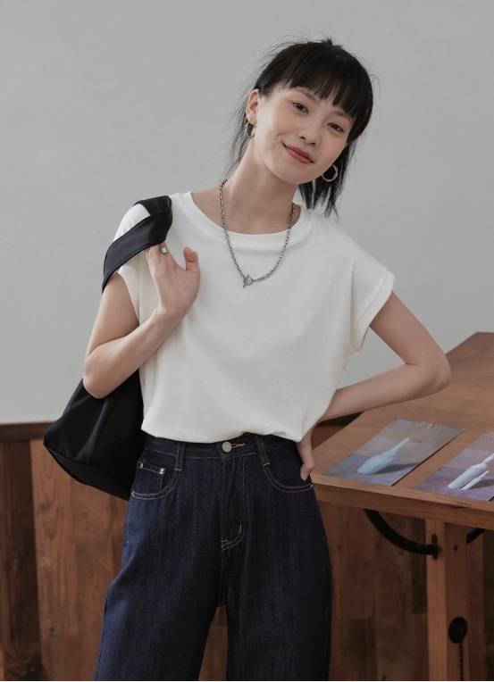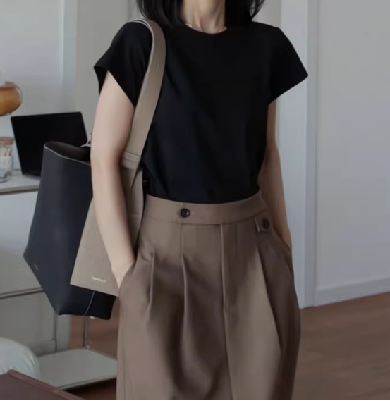 ❤️这件T恤就很适合打工人通勤穿, 简单搭配个牛仔裤或西装裤就可, 简约大方又干练, 胸前还能再来条锁骨链点缀一下, 把低调精致感给拿捏住了!