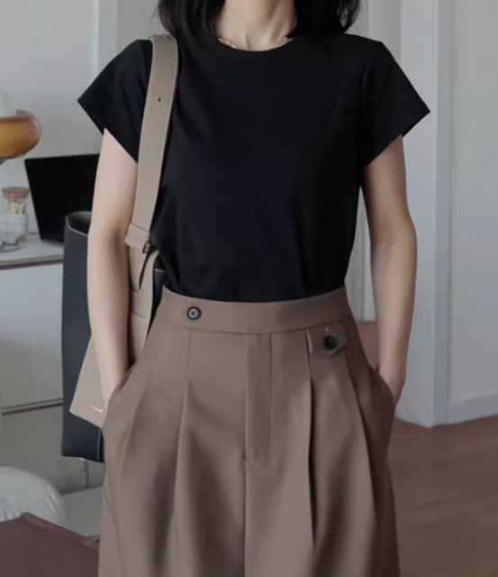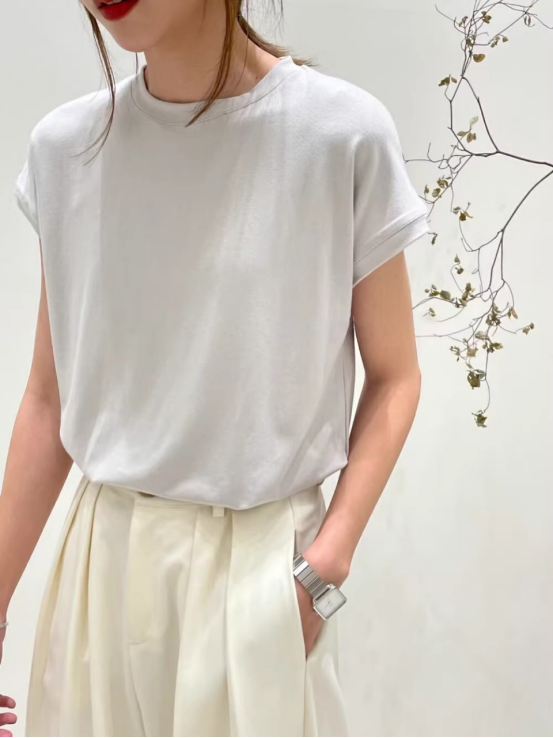 今年就主打一个慵懒清爽过夏天🍃 基础款短袖真的很好搭 袖口有点小飞袖设计可以很好修饰手臂线条! 颜色都是做的简约纯色 less is more 越简单越高级~ 用来搭配任何一件上衣都很有质感👌