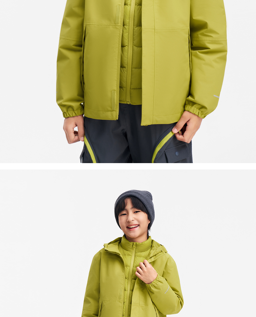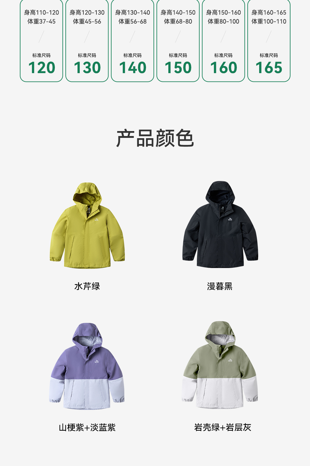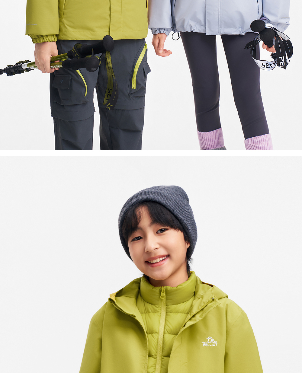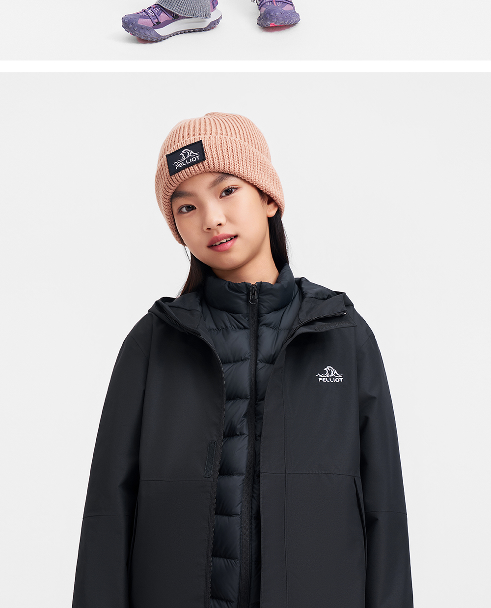 伯希和户外三合一冲锋衣儿童90大朵鹅绒羽绒服保暖防暴雨运动外套