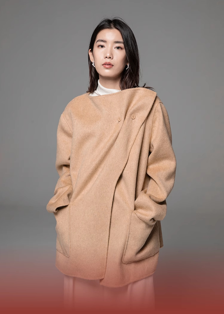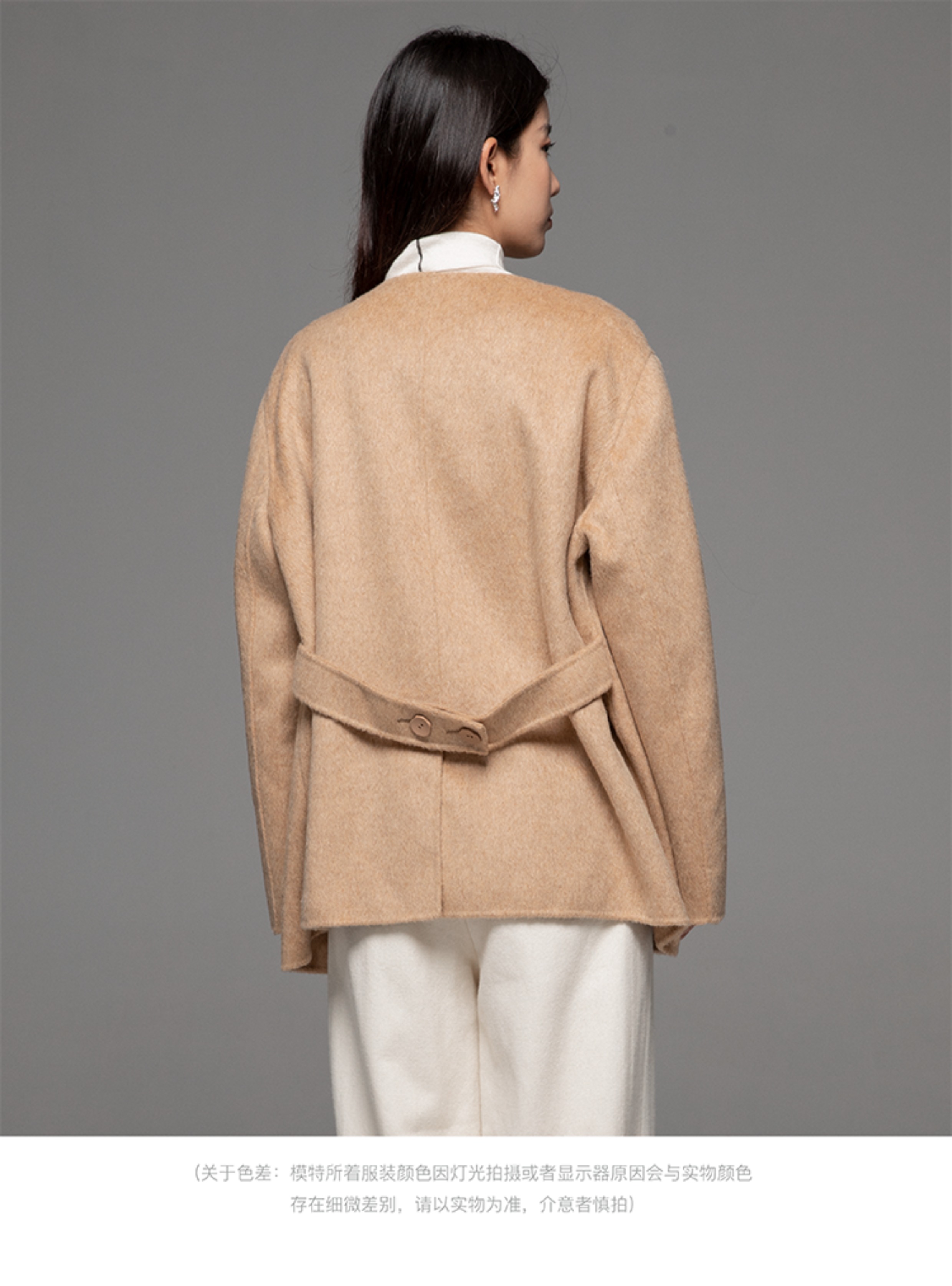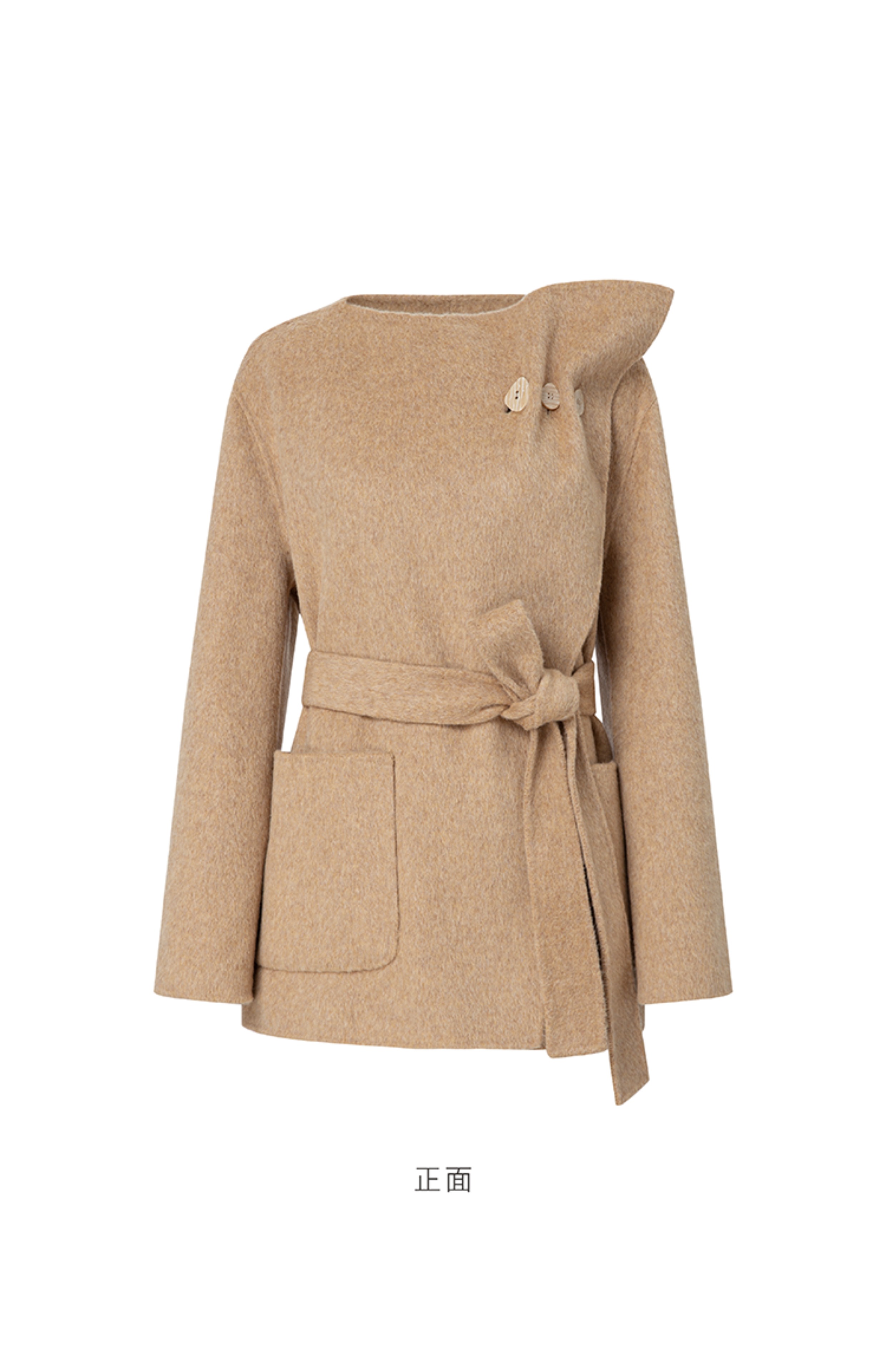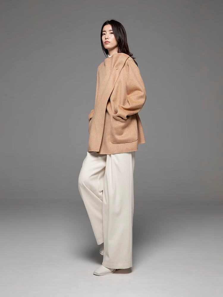 LIYIHAN 24冬绵羊毛不规则结构翻领短款大衣腰带高级复古设计感