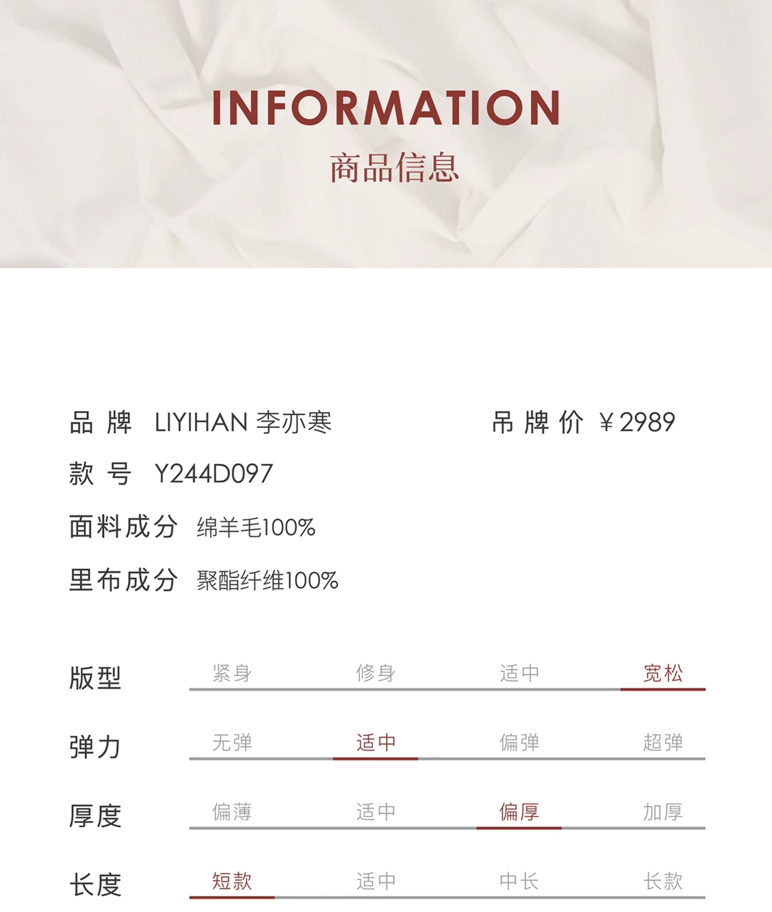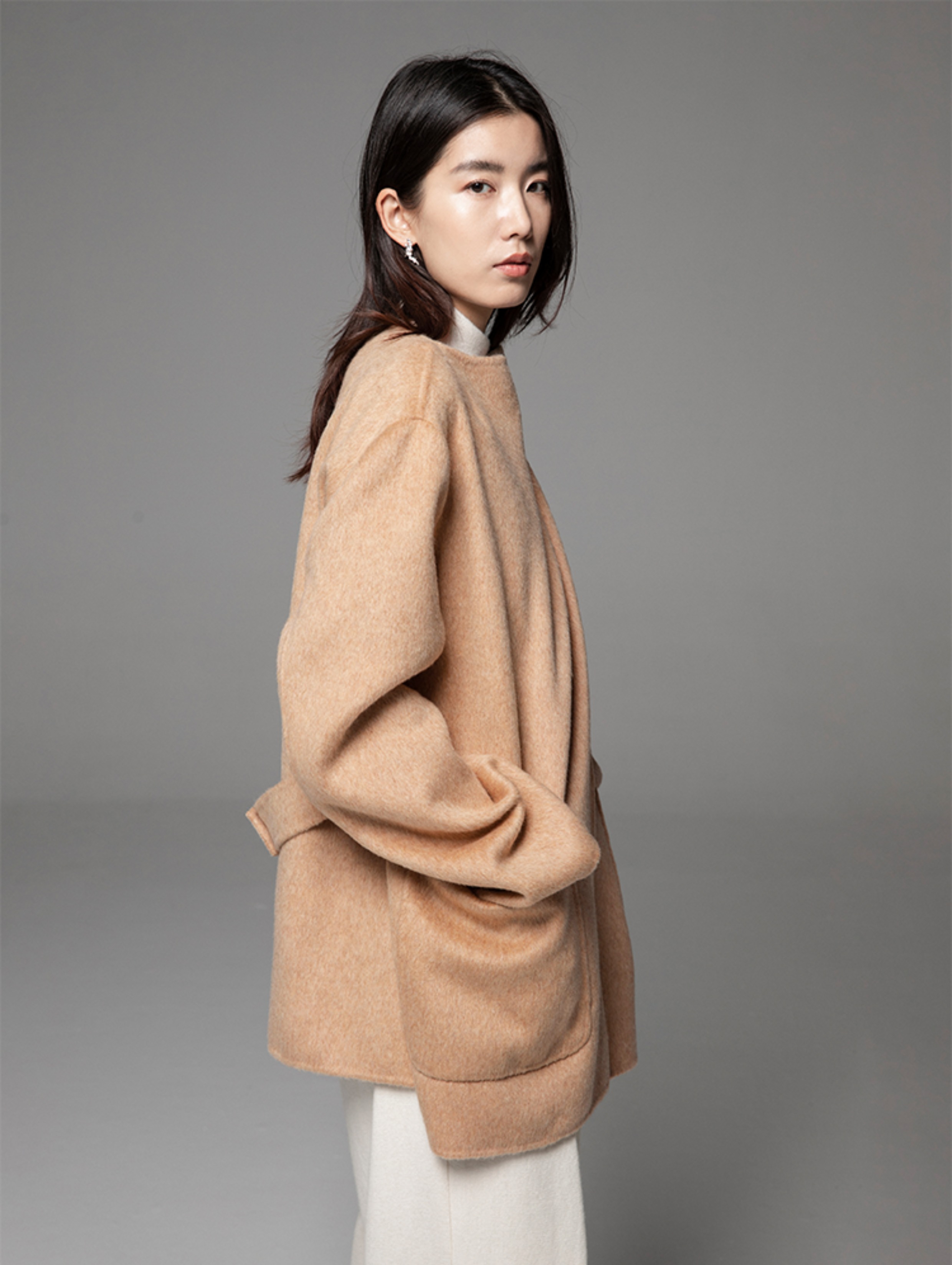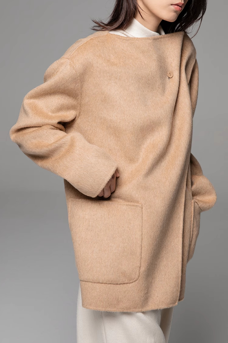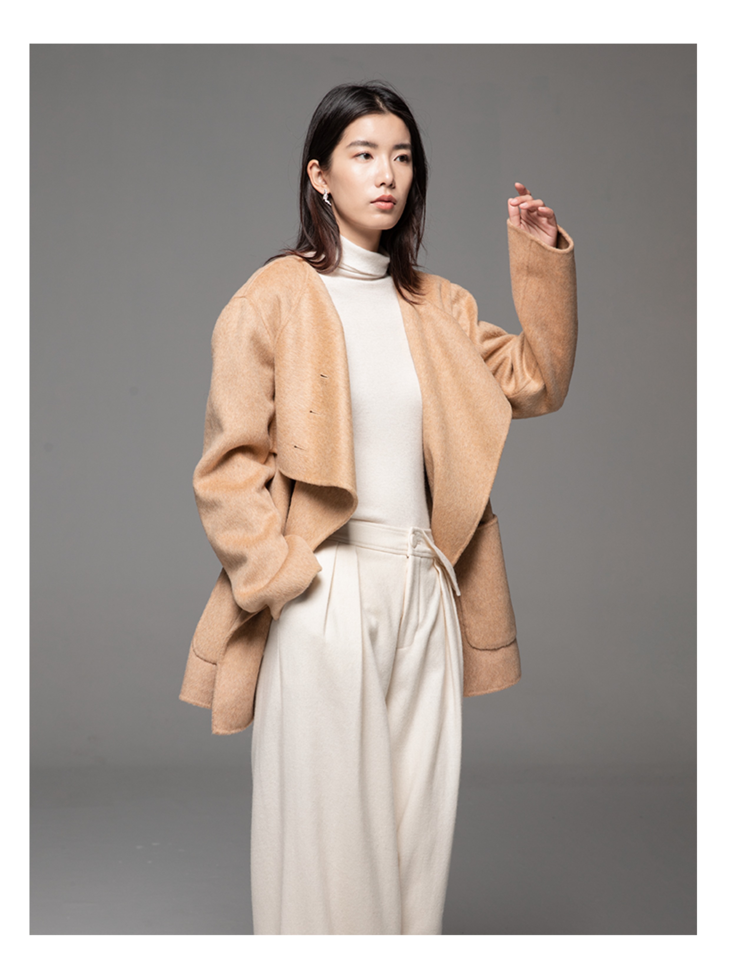 LIYIHAN 24冬绵羊毛不规则结构翻领短款大衣腰带高级复古设计感