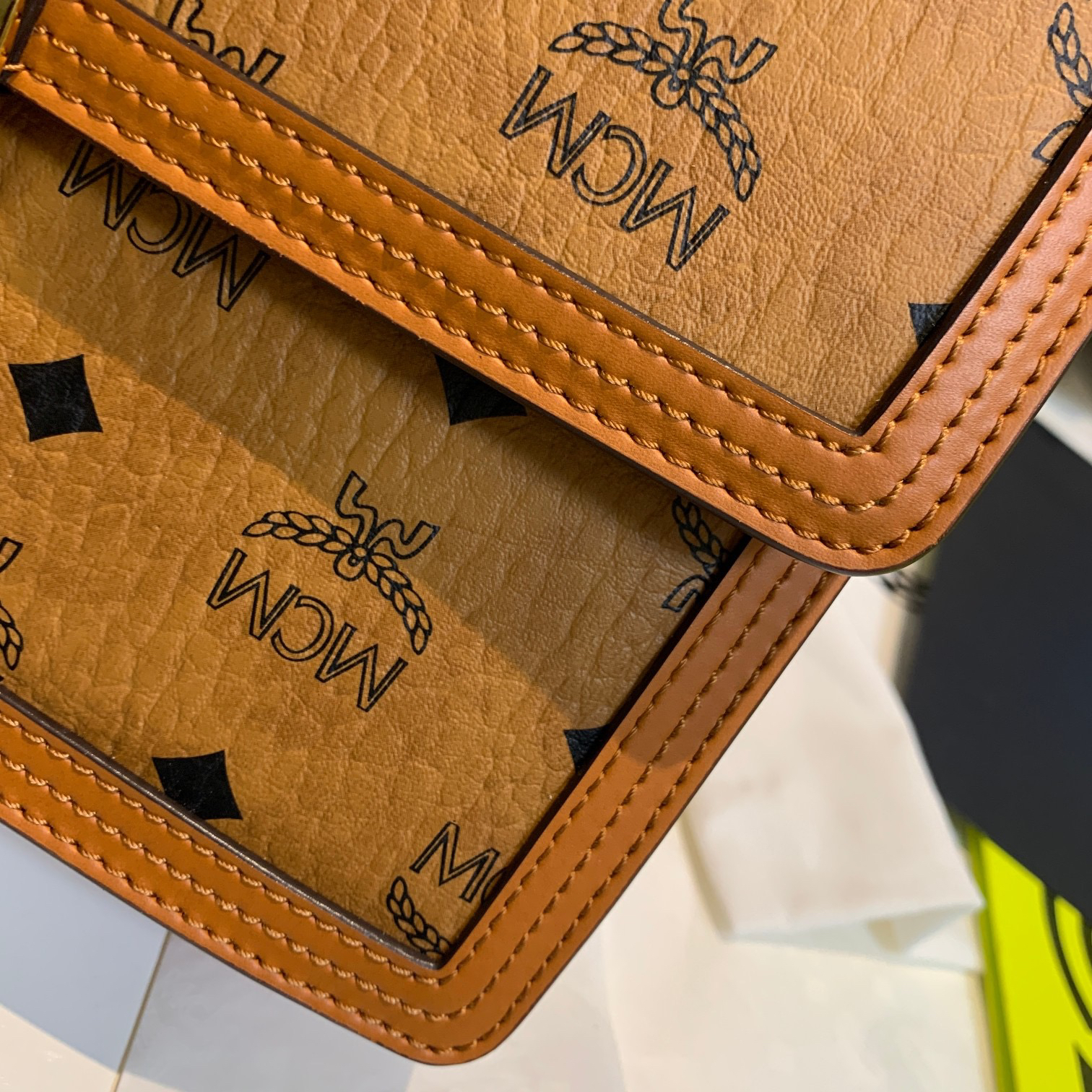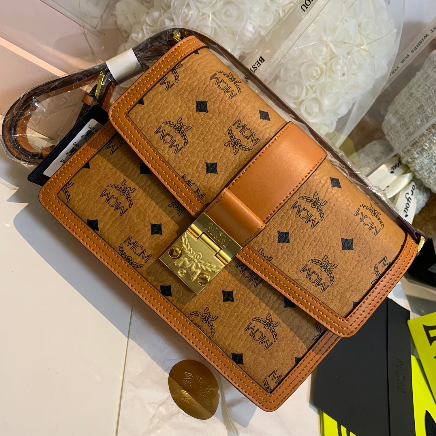 秋冬特惠💰800 原单MCM 原厂皮 中号斜挎肩带翻盖包L088 经典干邑色 这款Tracy肩背包