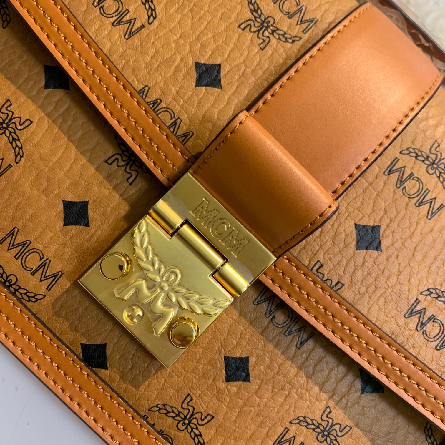 秋冬特惠💰800 原单MCM 原厂皮 中号斜挎肩带翻盖包L088 经典干邑色 这款Tracy肩背包对经典Satchel包袋进行了现代演绎。由经典Visetos制成,并饰以Vachetta皮革饰边,打造出经典款包袋的全新纤薄版。包袋采用标志性月桂叶锁扣闭合,内部则由柔软皮革制成侧翼,能适应现代生活的多样性。