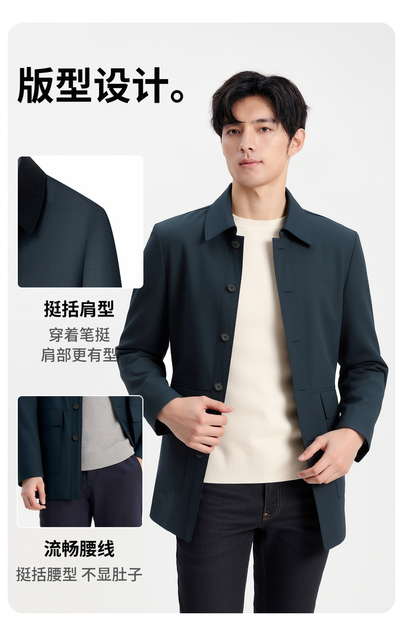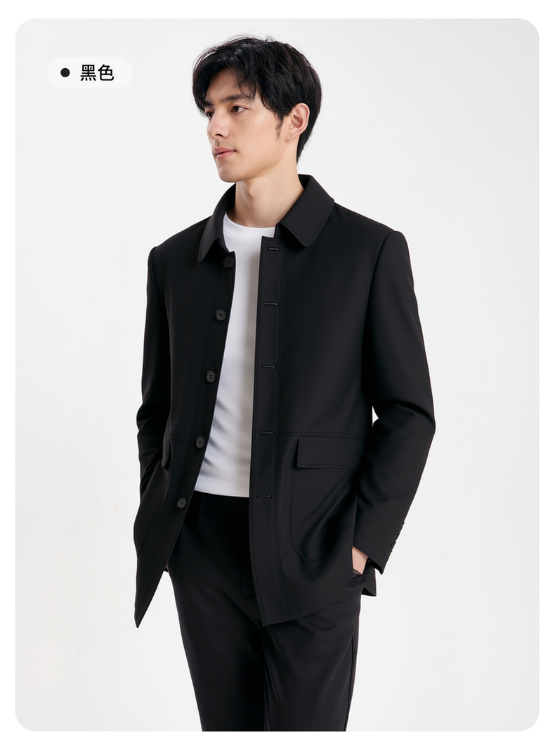 易打理 商务休闲夹克 含桑蚕丝 经典翻领 挺括有型 夹克