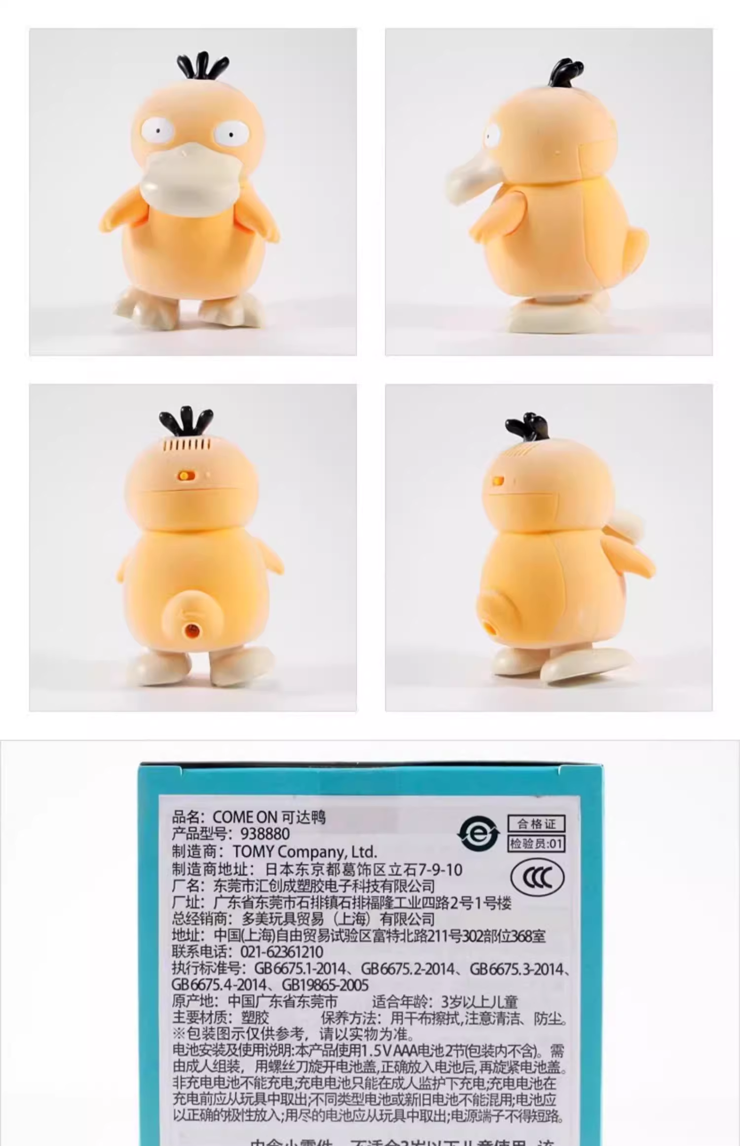 Tomica COME ON 可达鸭 两节7号电池TMSC938880