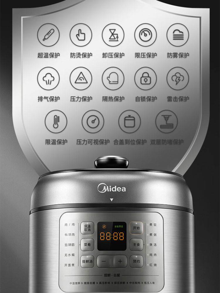 美的5L电压力锅MY-C543G【分仓直发,72小时发货,周末节假日不发货】