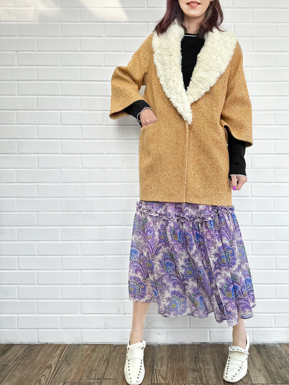 TYNVIE 木耳边领口通花长袖上衣 - 黑色