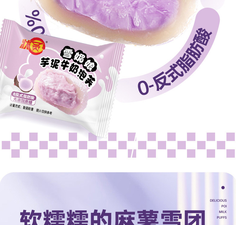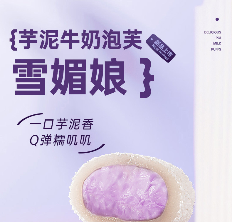 【会爆浆!芋泥牛奶泡芙雪媚娘】咬一口Q弹棉软,糯叭叽糕点心网红休闲一整箱面包团子早餐零食代餐学生糕点