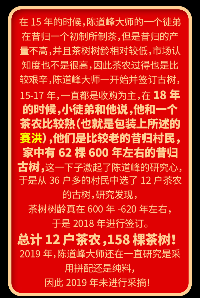 2025年头春嫡系昔归600古树陈道峰大师监制