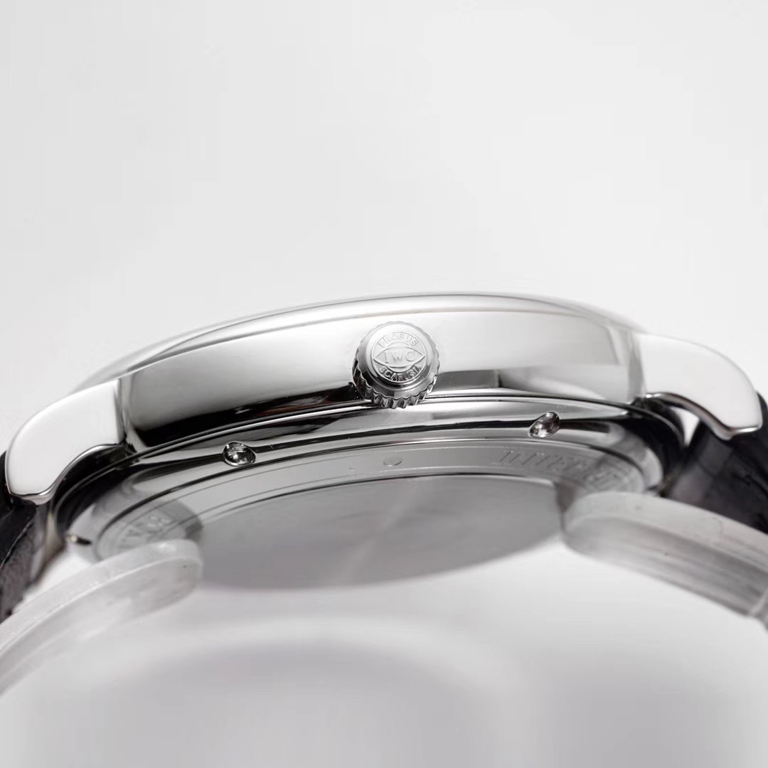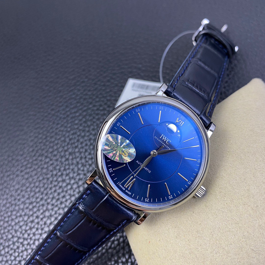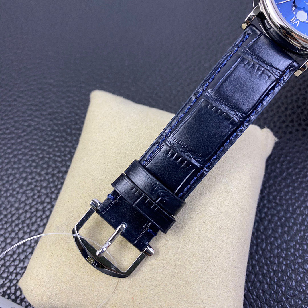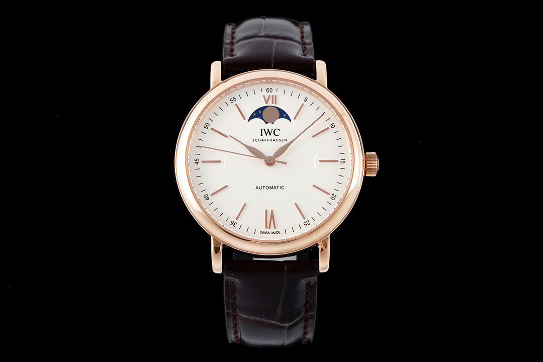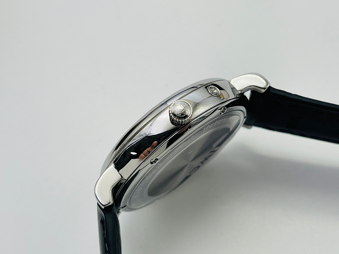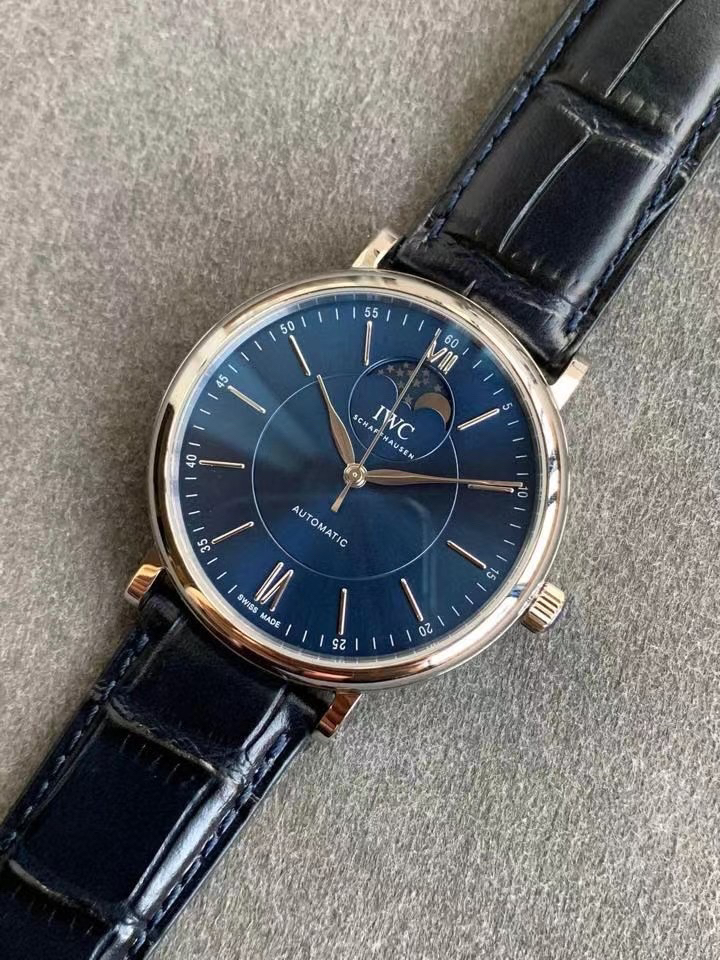波涛真月相 一天跳一小格 一个月走一圈 同步正品功能 IWC万国推出全新波涛菲诺系列40mm月相精钢机械男表IW459401,IW459402。月相显示无疑是所有复杂功能中最梦幻美丽的月相显示设计成一面繁星密布的夜空,月亮和星星仿若悬浮在无边无际的苍穹之中。月相以不同场景呈现于人们眼前——月亮时而闪现于云朵之中,时而悬浮于繁星闪烁的夜空之下。柳叶形指针以优雅的姿态勾勒出时间的神韵全新定制版原装进口全自动机械机芯,走时精准、稳定、耐用 腕表采用一枚造型精美的穹形蓝宝石水晶玻璃表镜,表镜经双面防眩处理偷光光清晰,边缘处圆润的弧度透着典雅的气息。表冠侧面饰以简洁的三角坑纹,结合相对较为突出的表冠设计,上链手感非常舒适不锈钢表壳造型圆润、精巧,其表耳微微弯曲的弧度符合人体工程学,贴合手腕,佩戴舒适。柏涛菲诺腕表系列一直是万国家族中的谦谦君子,是含蓄气质与高雅品味的完美化身。它以简洁、永恒的设计成为万国表最热卖的腕表系列之一,受到男士和女士的一致青睐。万国糅合精准无比的性能和独一无二的设计,为我们呈现了一场美轮美奂的视觉享受。