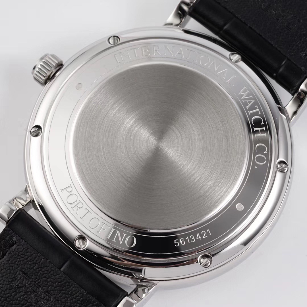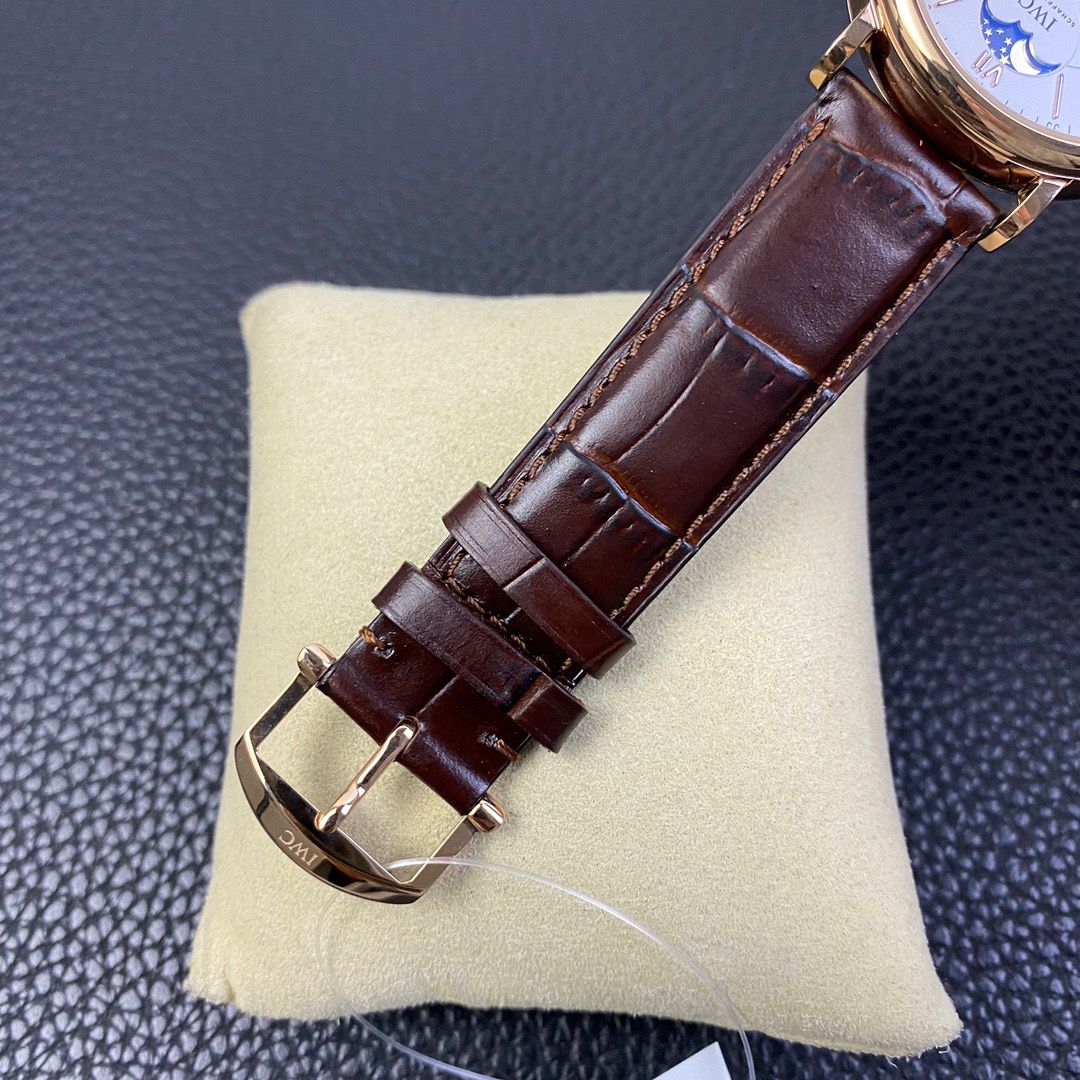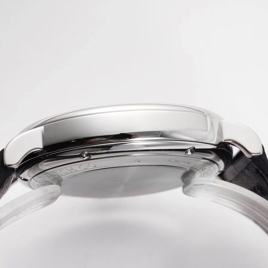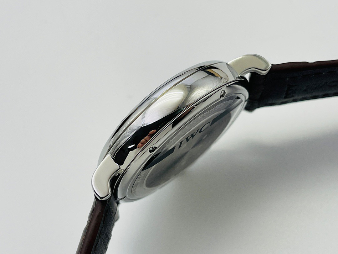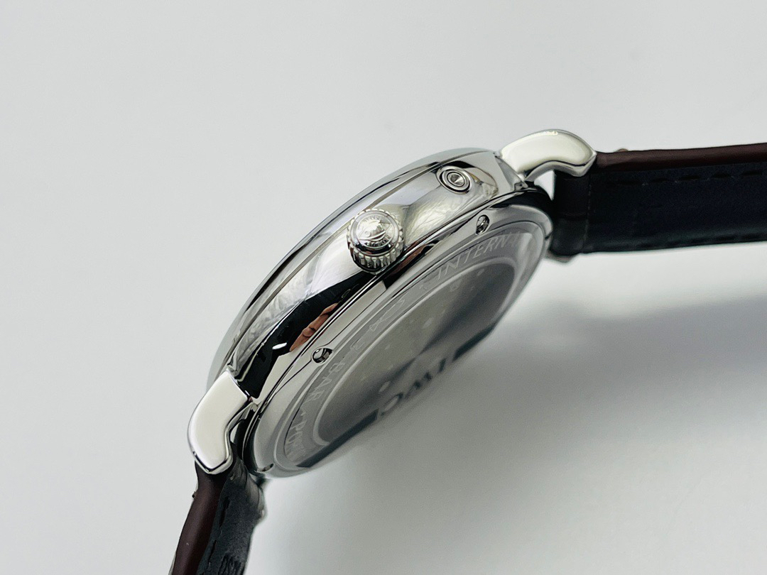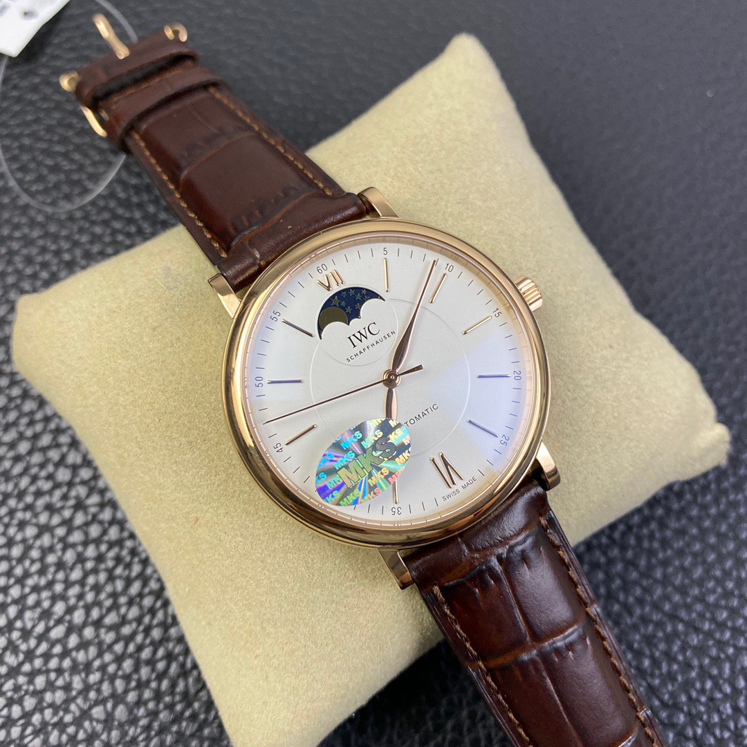 波涛真月相 一天跳一小格 一个月走一圈 同步正品功能 IWC万国推出全新波涛菲诺系列40mm月相精钢机械男表IW459401,IW459402。月相显示无疑是所有复杂功能中最梦幻美丽的月相显示设计成一面繁星密布的夜空,月亮和星星仿若悬浮在无边无际的苍穹之中。月相以不同场景呈现于人们眼前——月亮时而闪现于云朵之中,时而悬浮于繁星闪烁的夜空之下。柳叶形指针以优雅的姿态勾勒出时间的神韵全新定制版原装进口全自动机械机芯,走时精准、稳定、耐用 腕表采用一枚造型精美的穹形蓝宝石水晶玻璃表镜,表镜经双面防眩处理偷光光清晰,边缘处圆润的弧度透着典雅的气息。表冠侧面饰以简洁的三角坑纹,结合相对较为突出的表冠设计,上链手感非常舒适不锈钢表壳造型圆润、精巧,其表耳微微弯曲的弧度符合人体工程学,贴合手腕,佩戴舒适。柏涛菲诺腕表系列一直是万国家族中的谦谦君子,是含蓄气质与高雅品味的完美化身。它以简洁、永恒的设计成为万国表最热卖的腕表系列之一,受到男士和女士的一致青睐。万国糅合精准无比的性能和独一无二的设计,为我们呈现了一场美轮美奂的视觉享受。