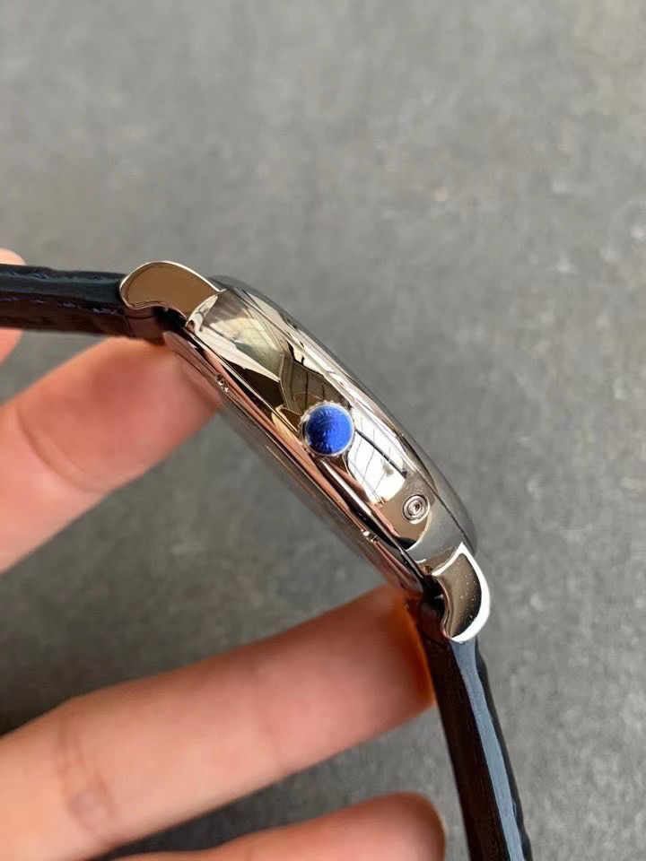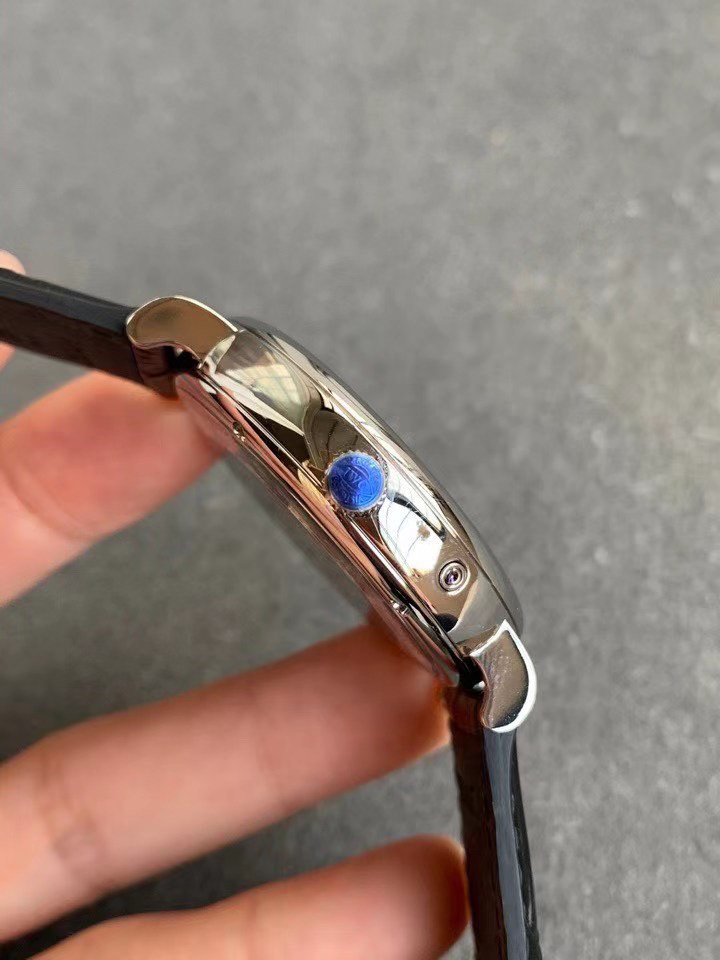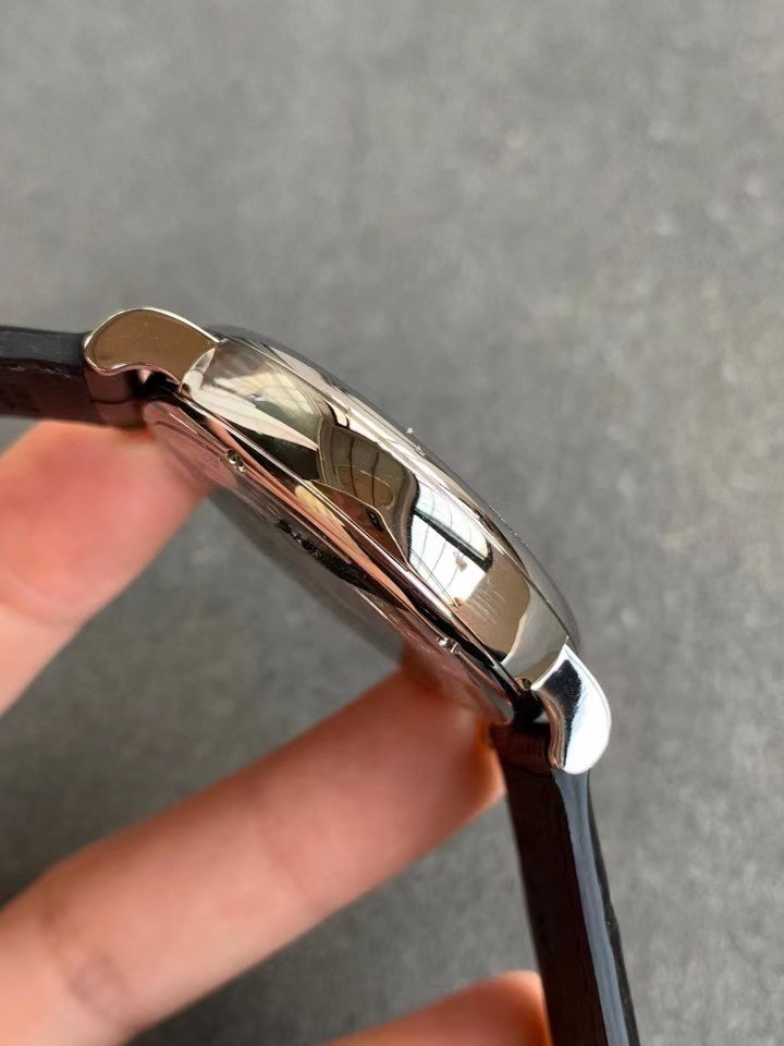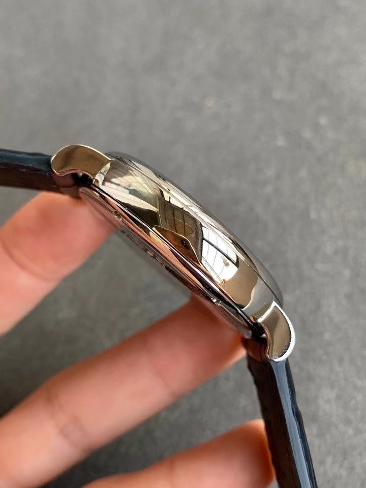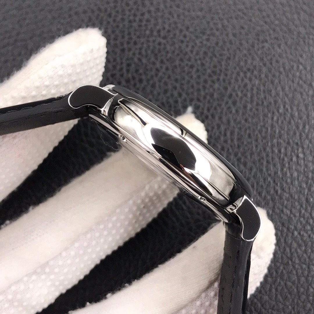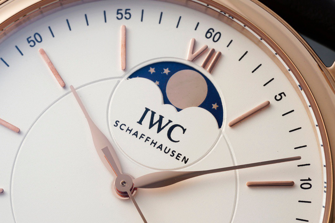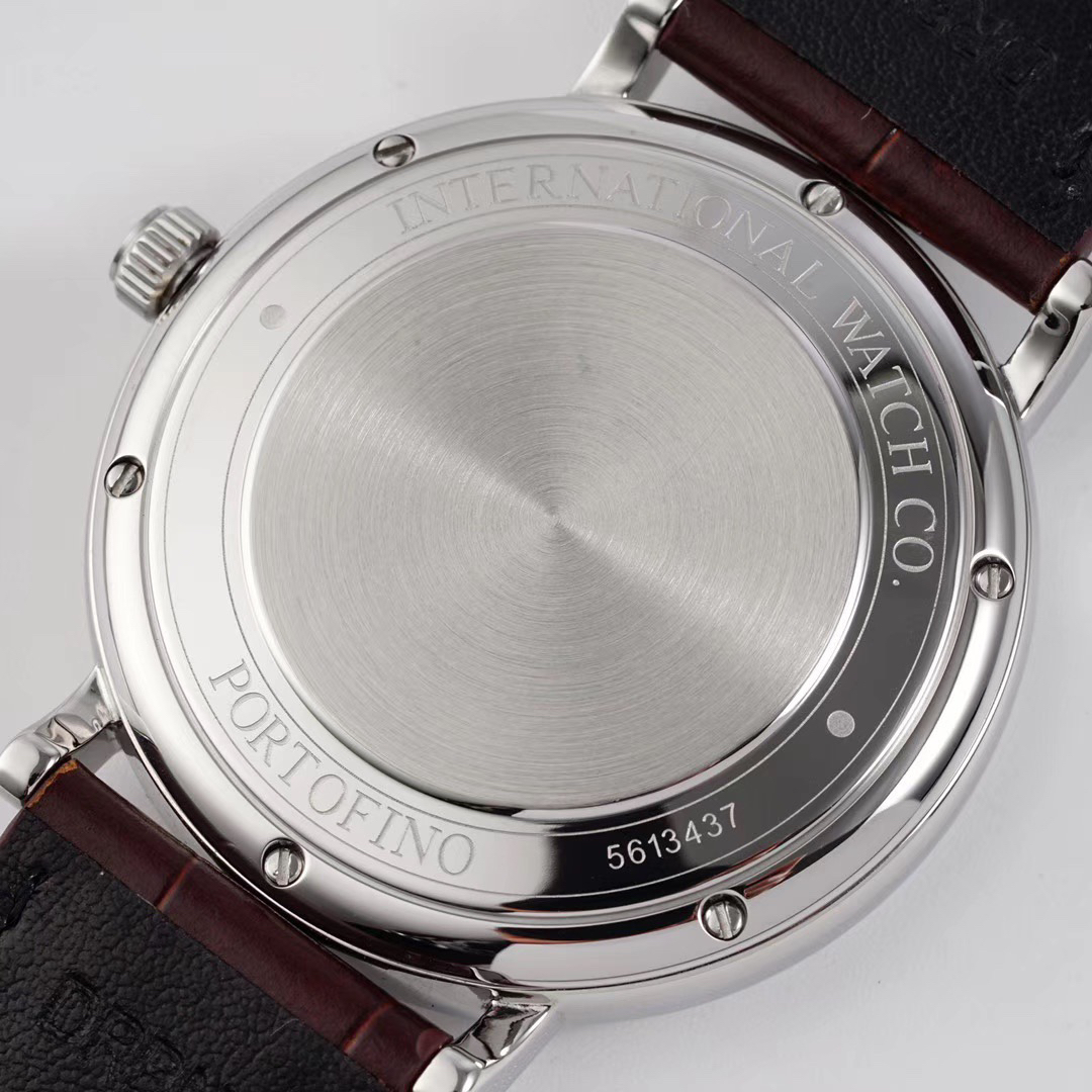 波涛真月相 一天跳一小格 一个月走一圈 同步正品功能 IWC万国推出全新波涛菲诺系列40mm月相精钢机械男表IW459401,IW459402。月相显示无疑是所有复杂功能中最梦幻美丽的月相显示设计成一面繁星密布的夜空,月亮和星星仿若悬浮在无边无际的苍穹之中。月相以不同场景呈现于人们眼前——月亮时而闪现于云朵之中,时而悬浮于繁星闪烁的夜空之下。柳叶形指针以优雅的姿态勾勒出时间的神韵全新定制版原装进口全自动机械机芯,走时精准、稳定、耐用 腕表采用一枚造型精美的穹形蓝宝石水晶玻璃表镜,表镜经双面防眩处理偷光光清晰,边缘处圆润的弧度透着典雅的气息。表冠侧面饰以简洁的三角坑纹,结合相对较为突出的表冠设计,上链手感非常舒适不锈钢表壳造型圆润、精巧,其表耳微微弯曲的弧度符合人体工程学,贴合手腕,佩戴舒适。柏涛菲诺腕表系列一直是万国家族中的谦谦君子,是含蓄气质与高雅品味的完美化身。它以简洁、永恒的设计成为万国表最热卖的腕表系列之一,受到男士和女士的一致青睐。万国糅合精准无比的性能和独一无二的设计,为我们呈现了一场美轮美奂的视觉享受。