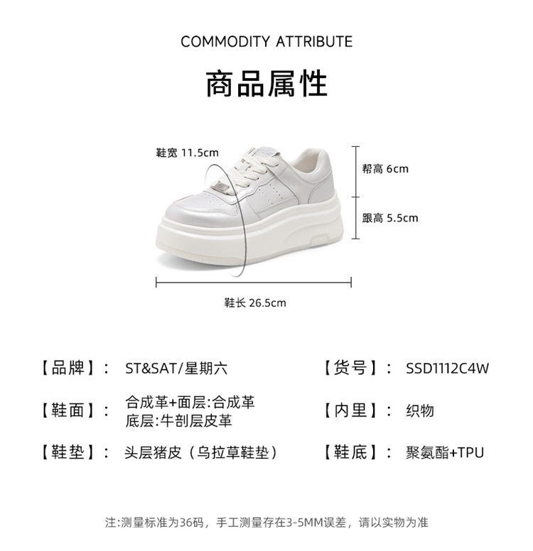 【百搭厚底】星期六时尚休闲松糕厚底板鞋SSD1112C4W