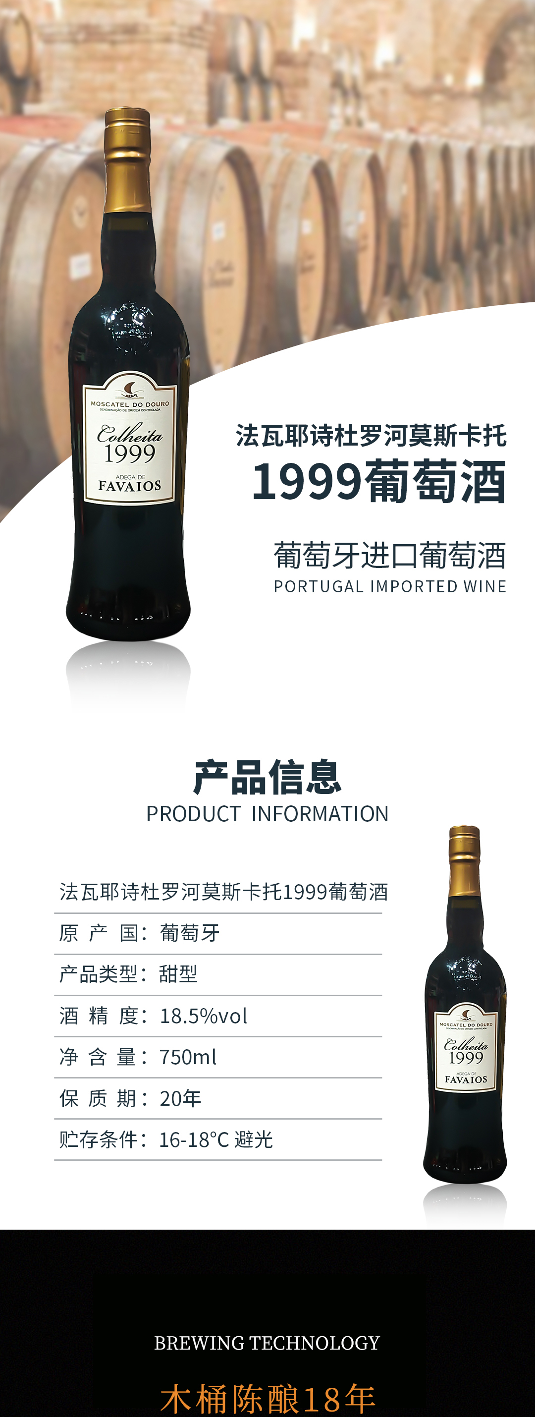 葡萄牙进口法瓦耶诗杜罗河莫斯卡托1999葡萄酒750ml