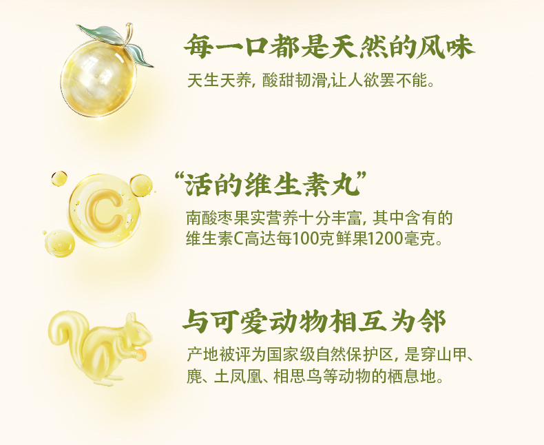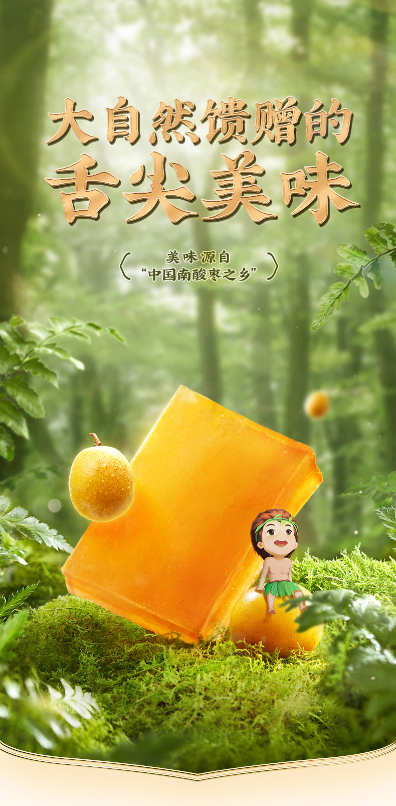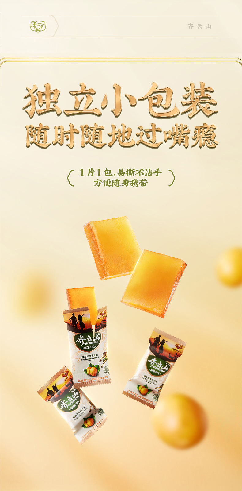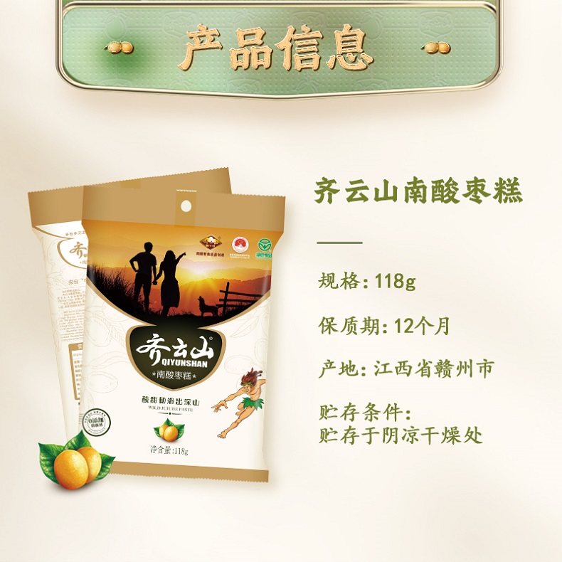 齐云山酸枣糕 · 26年绿色食品认证 · 配料表超级干净 · 不添加食用胶和色素 · 零防腐剂 · 软糯Q弹有喝劲 · 酸酸甜甜 · 超过瘾