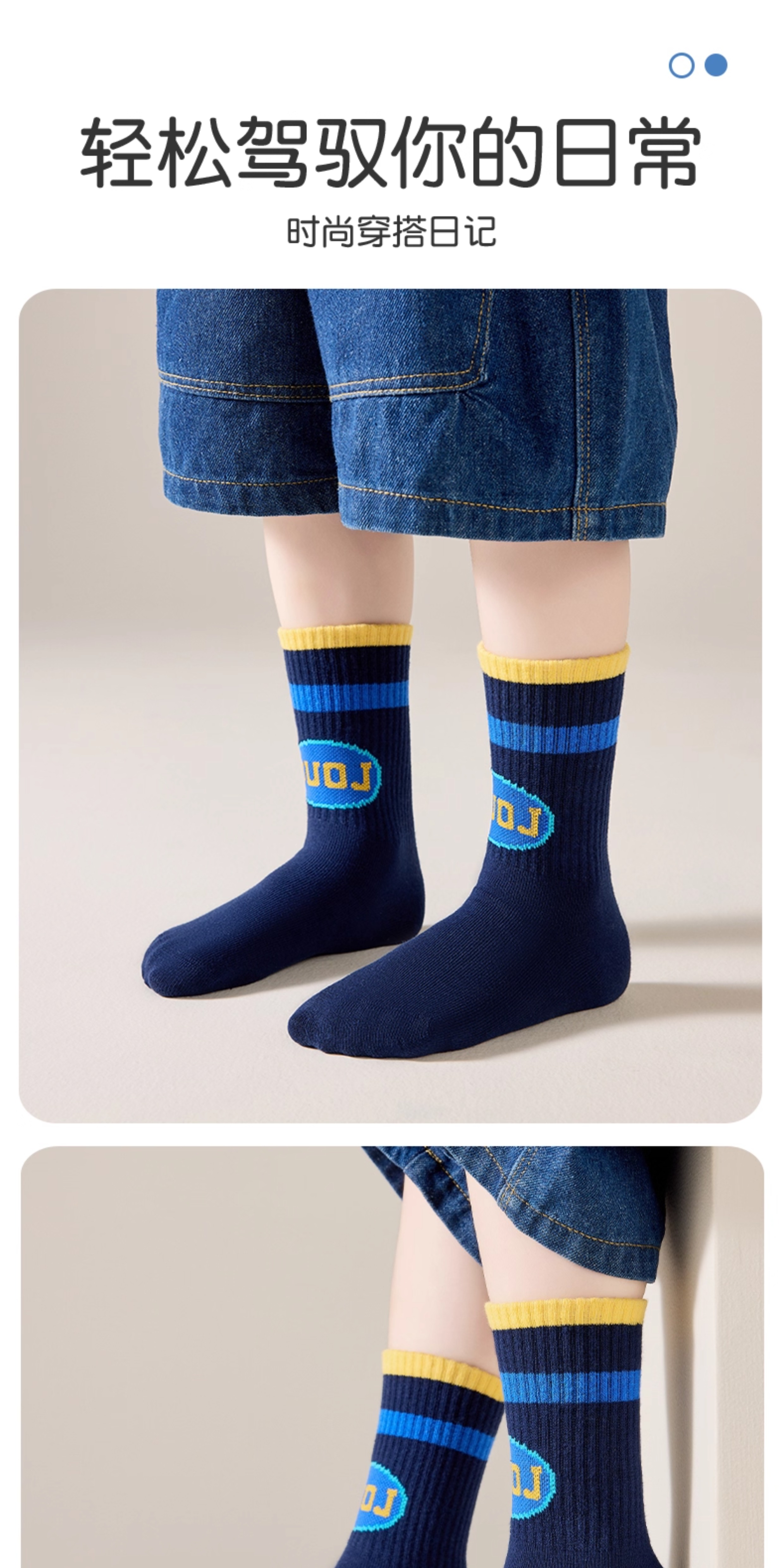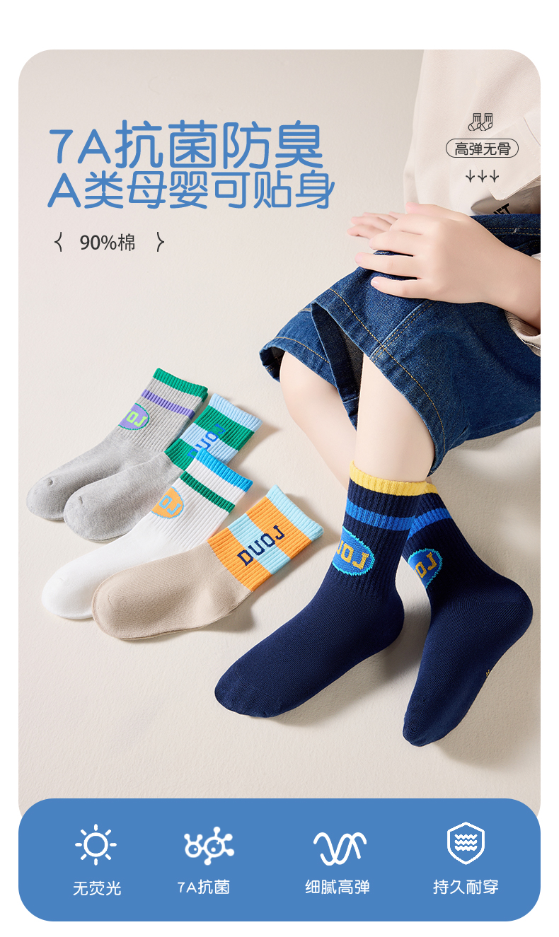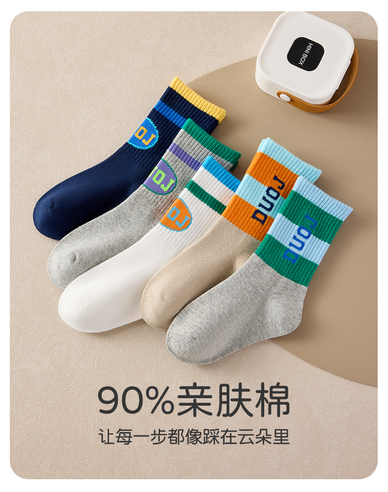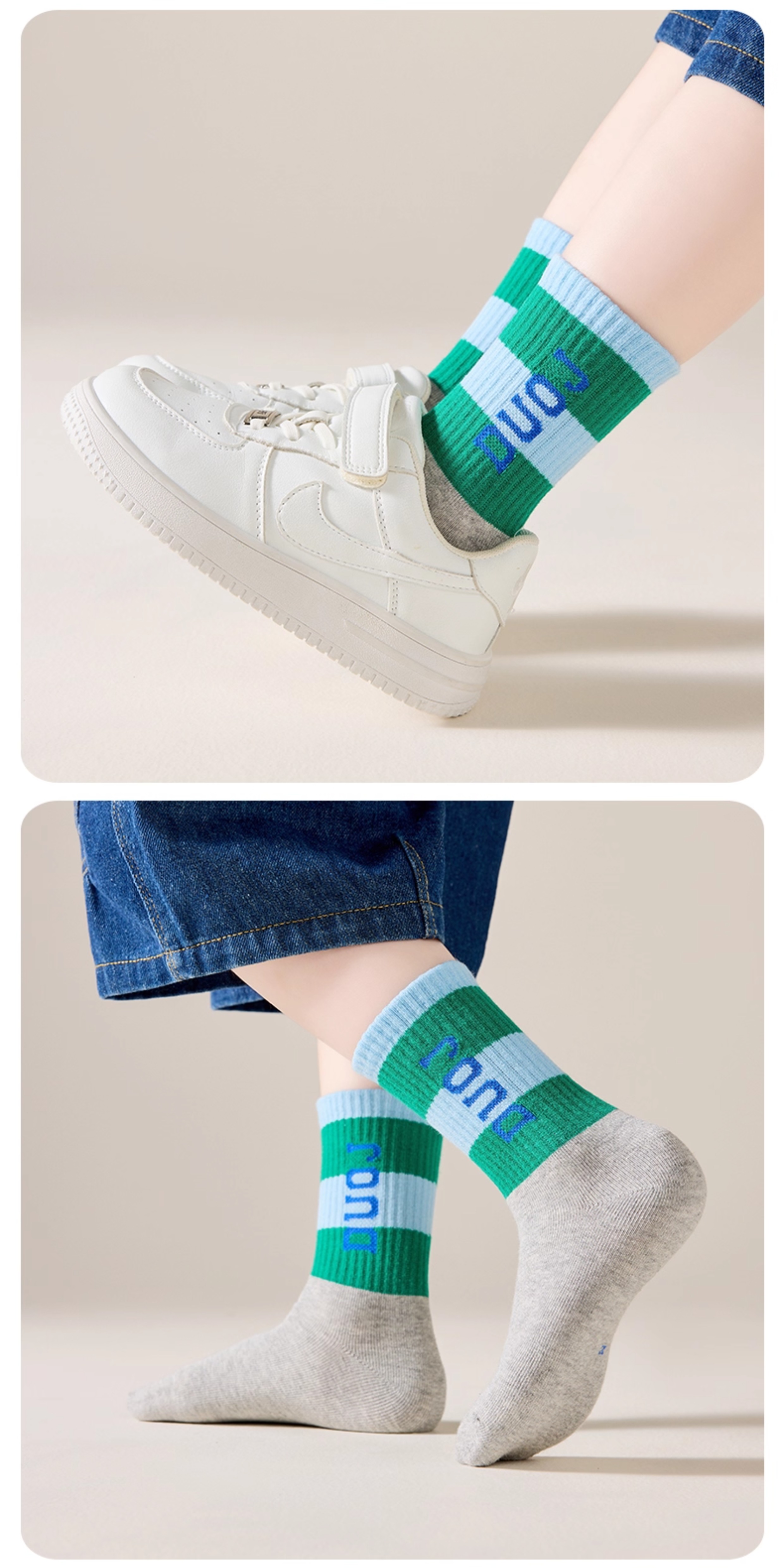 【件件底价,童装双倍积分】多多家男童袜子春秋季2025新款儿童运动拼接男孩中筒袜5双装A类11236