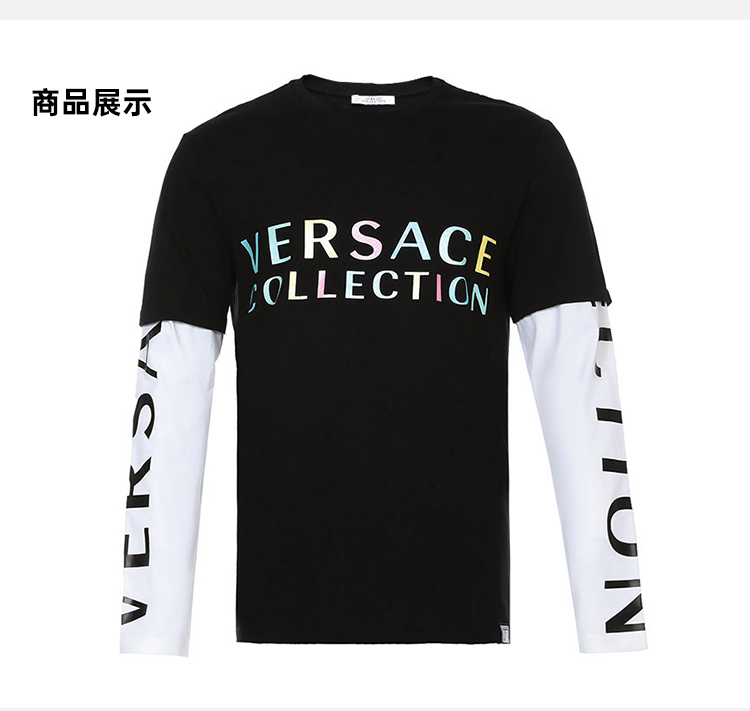 VERSACE COLLECTION 范思哲 男士棉质字母徽标印花长袖圆领T恤 黑色 V800887 VJ00180 V2005