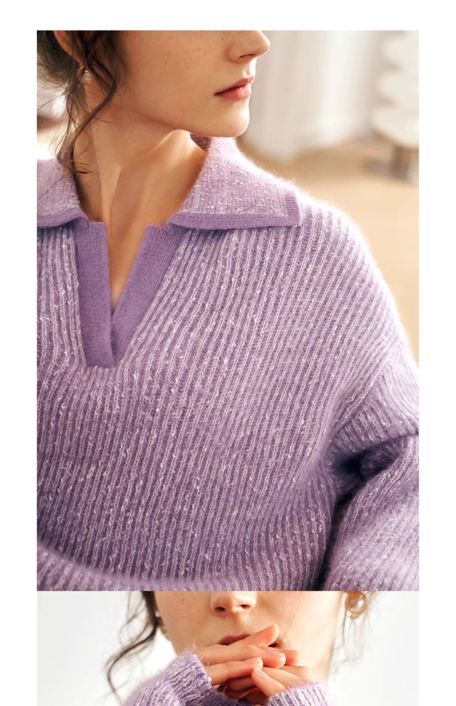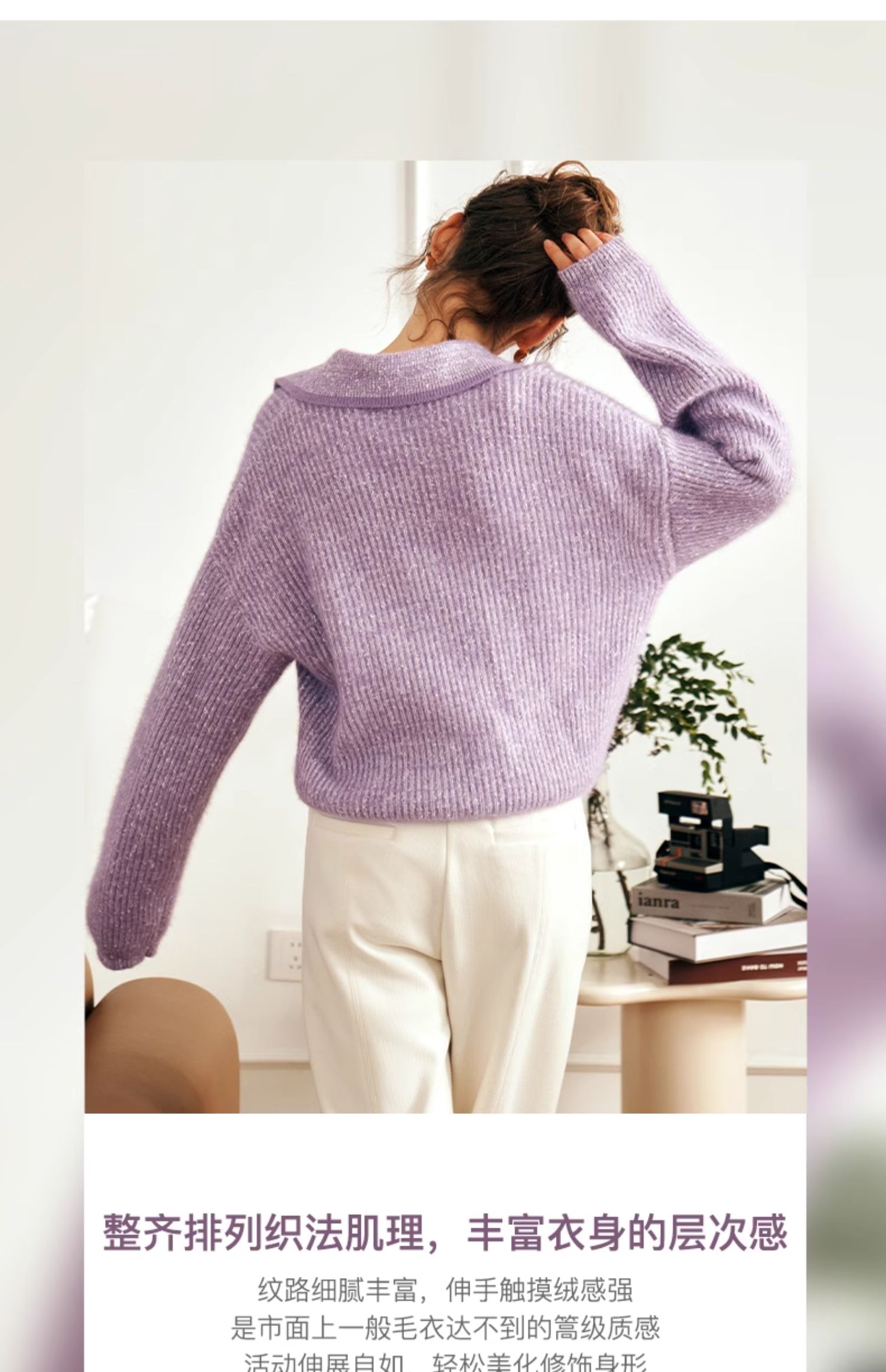 OLrain欧芮儿法式v领毛衣女秋冬2023新款撞色显瘦慵懒风套头上衣