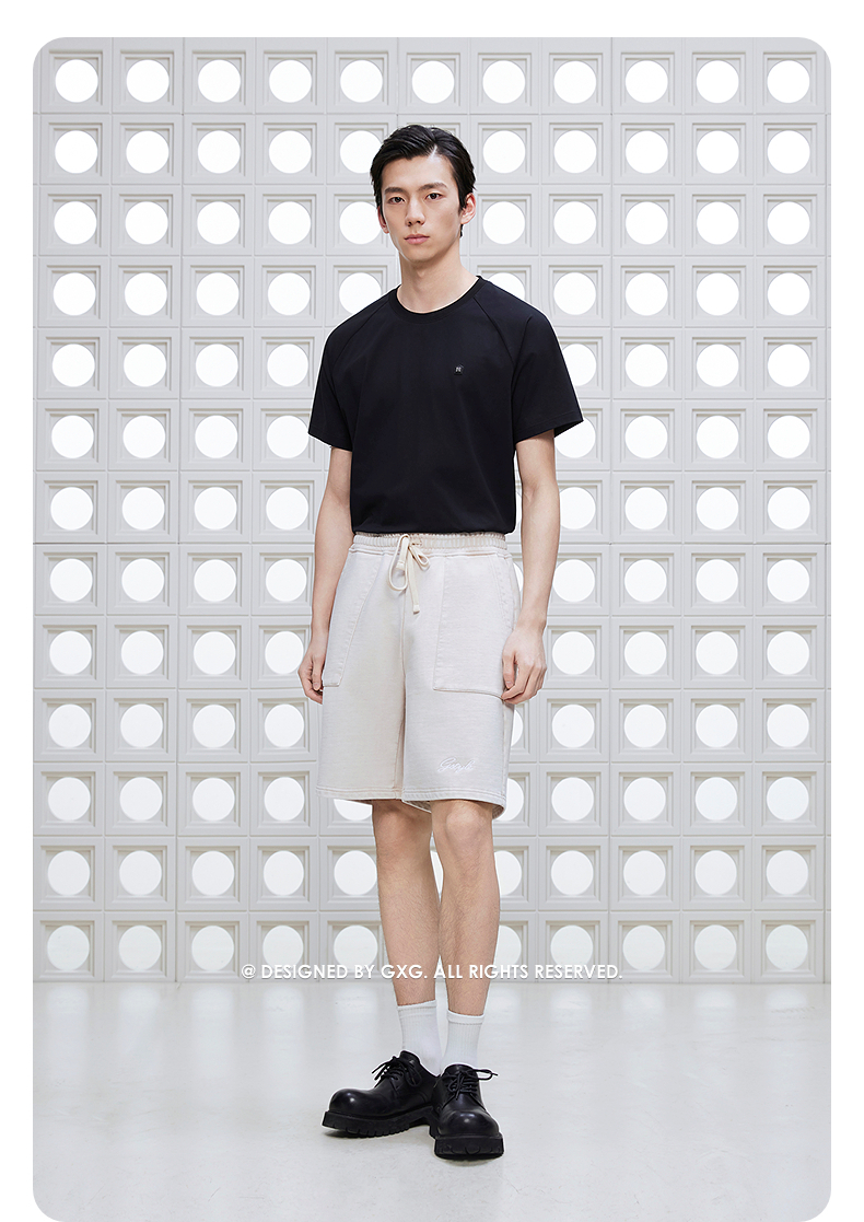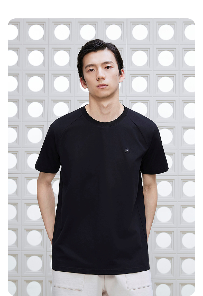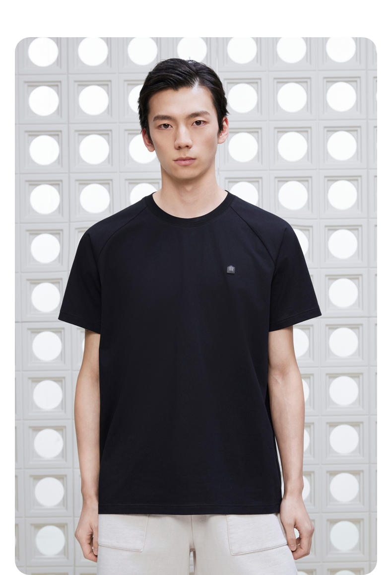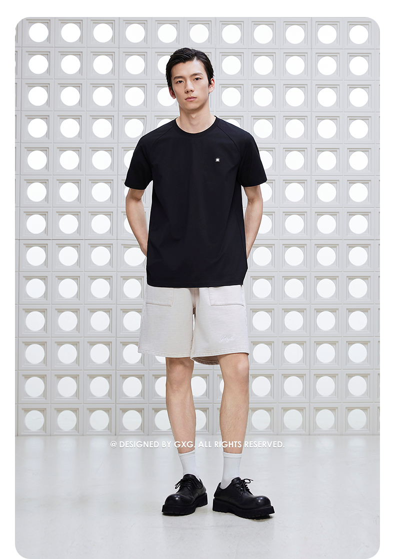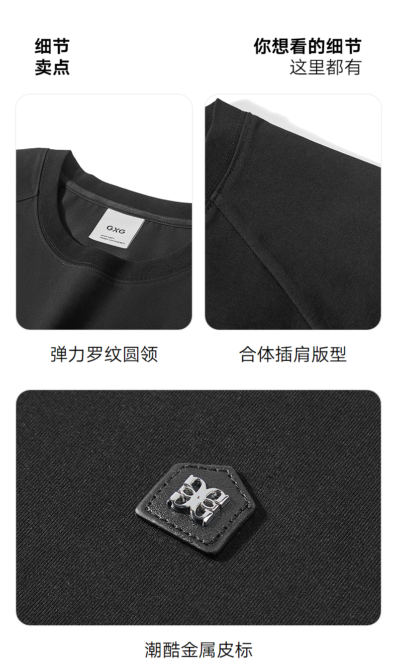 GXG男装 圆领T恤商务简约上衣长绒棉短袖针织 2025夏季新品