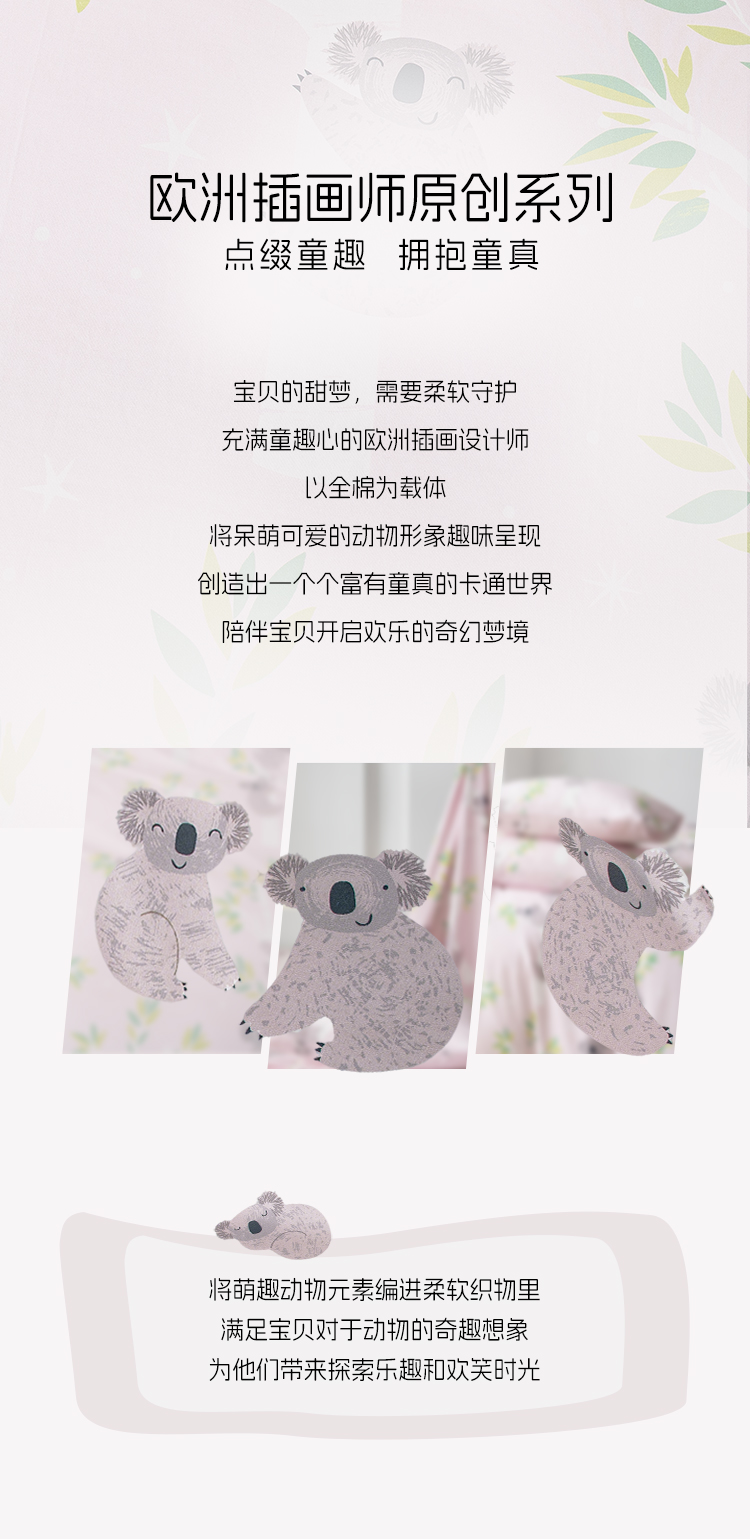 2025年夏季新款雅芳婷考拉儿童卡通套件亲肤透气床笠款全棉四件套